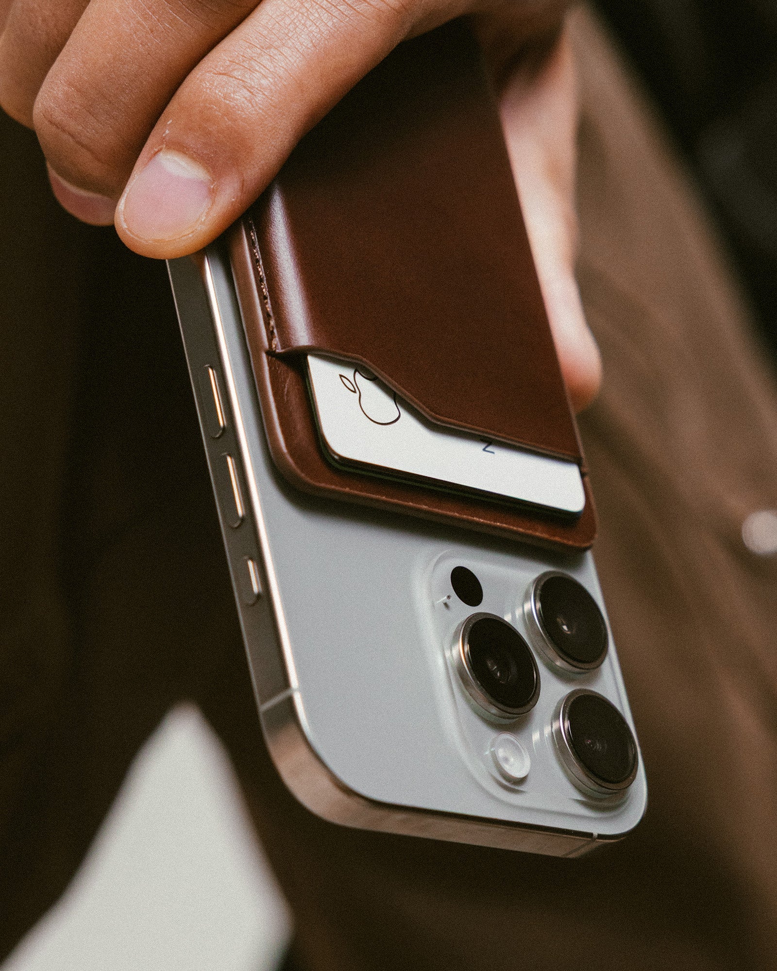 Leather Mag Wallet uses MagSafe to stay securely attached to your iPhone day in and day out. Easily pop it on and off depending on the day.