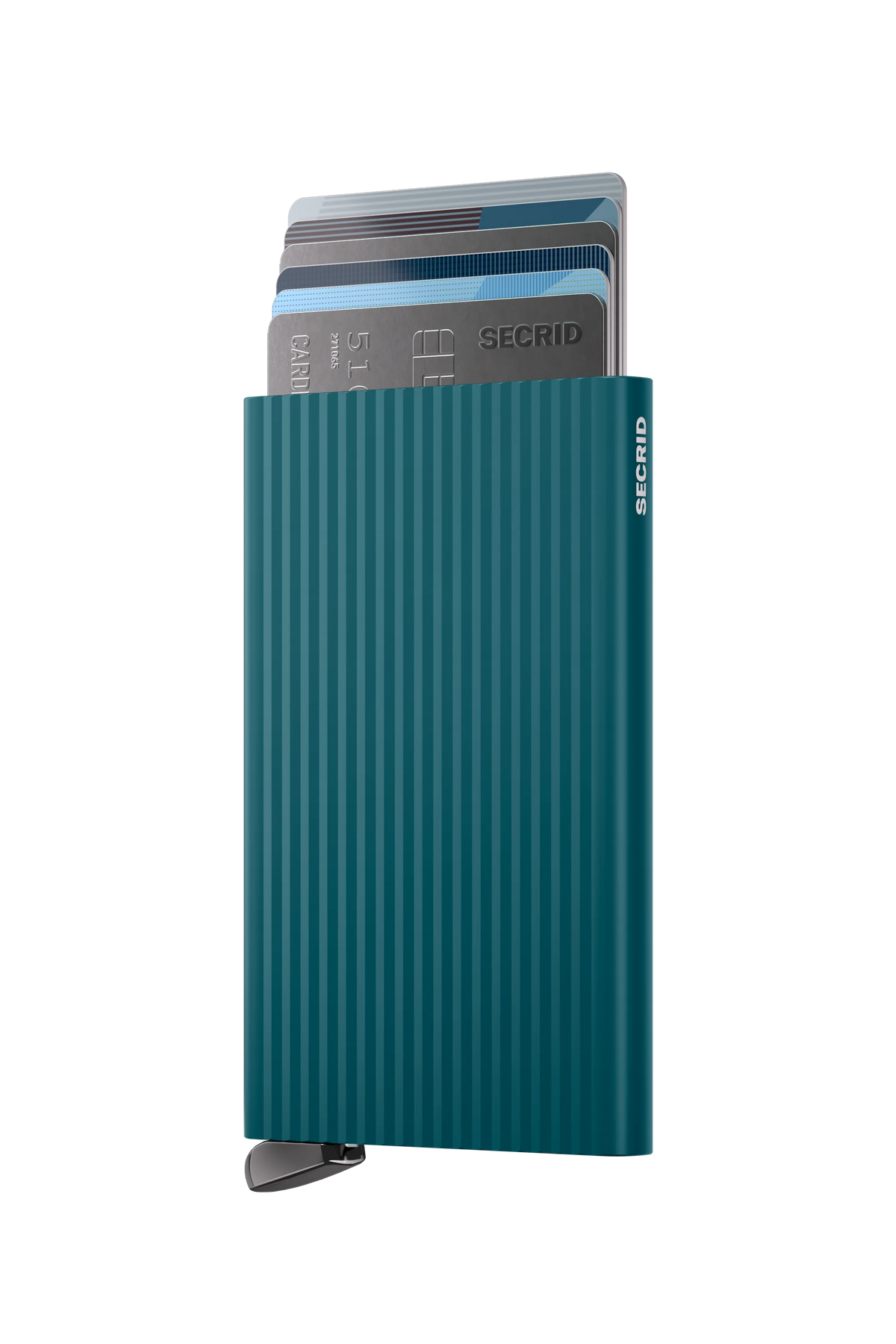 The next evolution, the Cardprotector+, features a patented auto-lock mechanism, including newly designed springs with very durable vegan fibre-pads sealed onto them. This allows it to securely hold all cards, even metal ones.