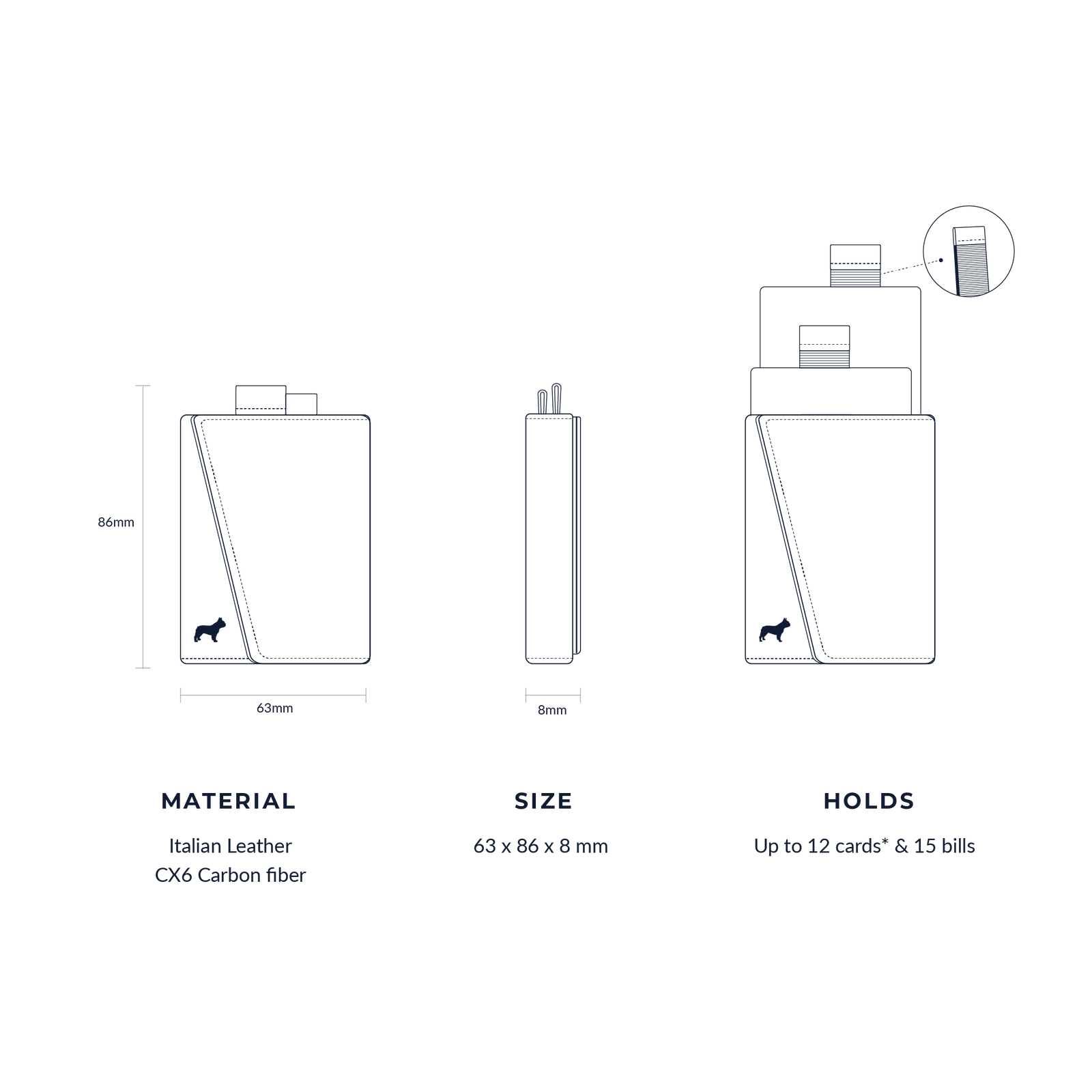 With dimensions of 6.3 x 8.6 x 0.8 cm (2.48 x 3.39 x 0.31 inches), it holds up to 12 cards and 15 bills while keeping a slim profile.