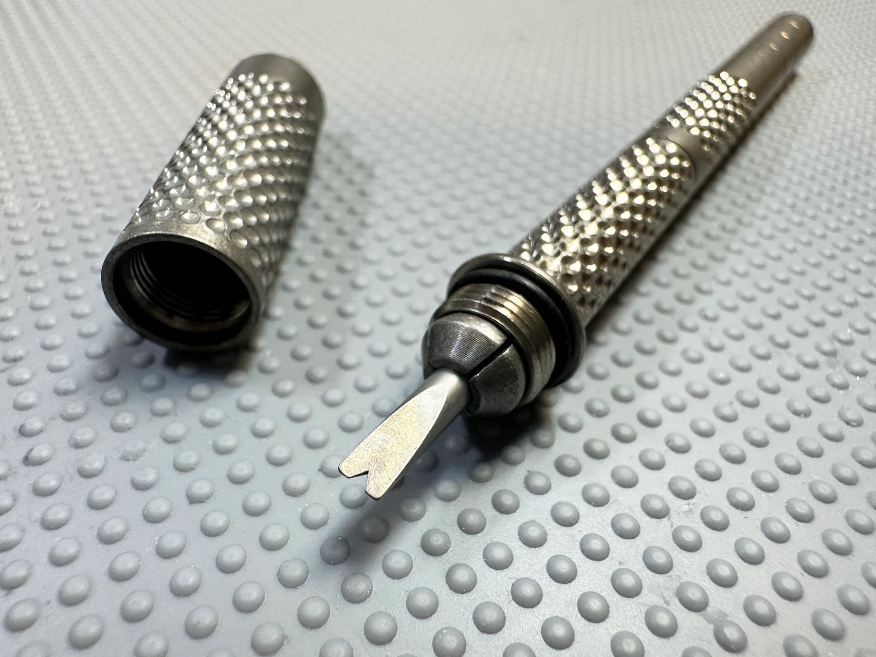 Made in collaboration with our friend D at the Hobby of Hours Youtube channel. He was tinkering with some of our gear and figured out how we could transform our titanium scalpel into the best watch strap tool out there.