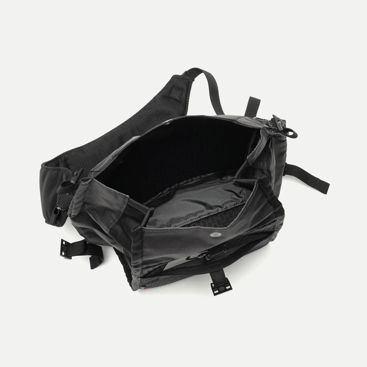 Constructed out of a breathable spacer mesh fabric, the sling strap has a built-in Fidlock Snap Buckle Combi stabilizer strap, chest zip pocket, and a quick release & adjust system.