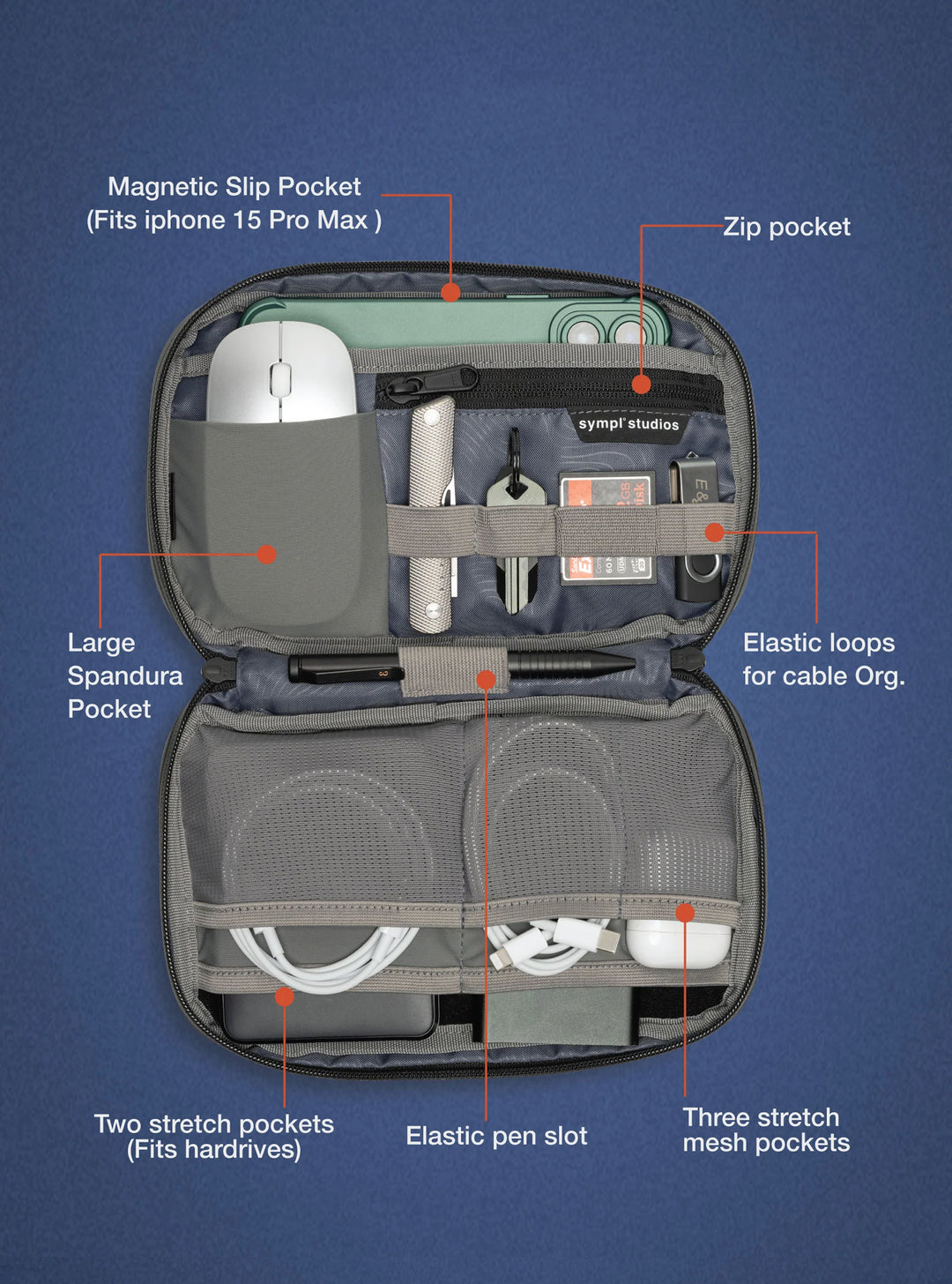 Built-in elastic loops keep every cord in check—no more tangles, knots, or digging. Just grab, plug, and go.