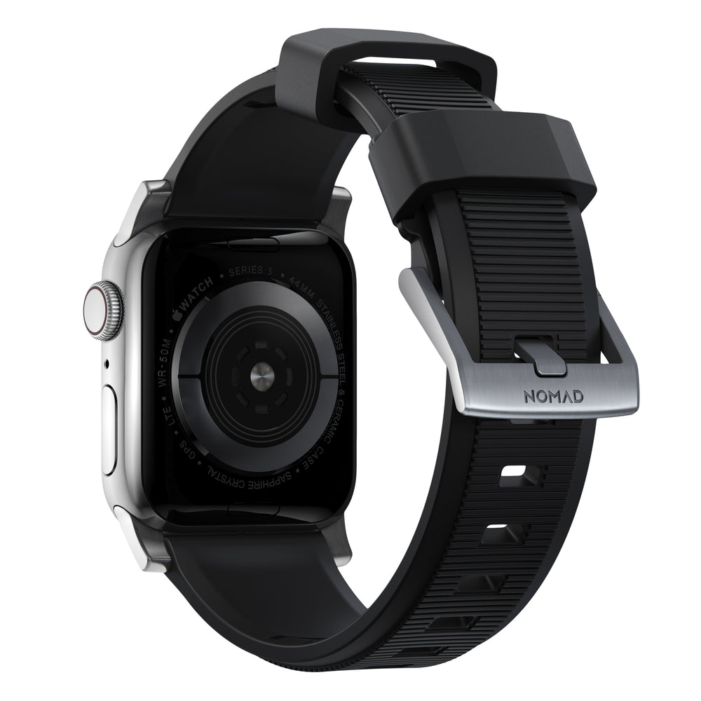 "Salt & Pepper" Swiss Army Rucksack Handmade Strap, Black Leather (for Apple Watch)