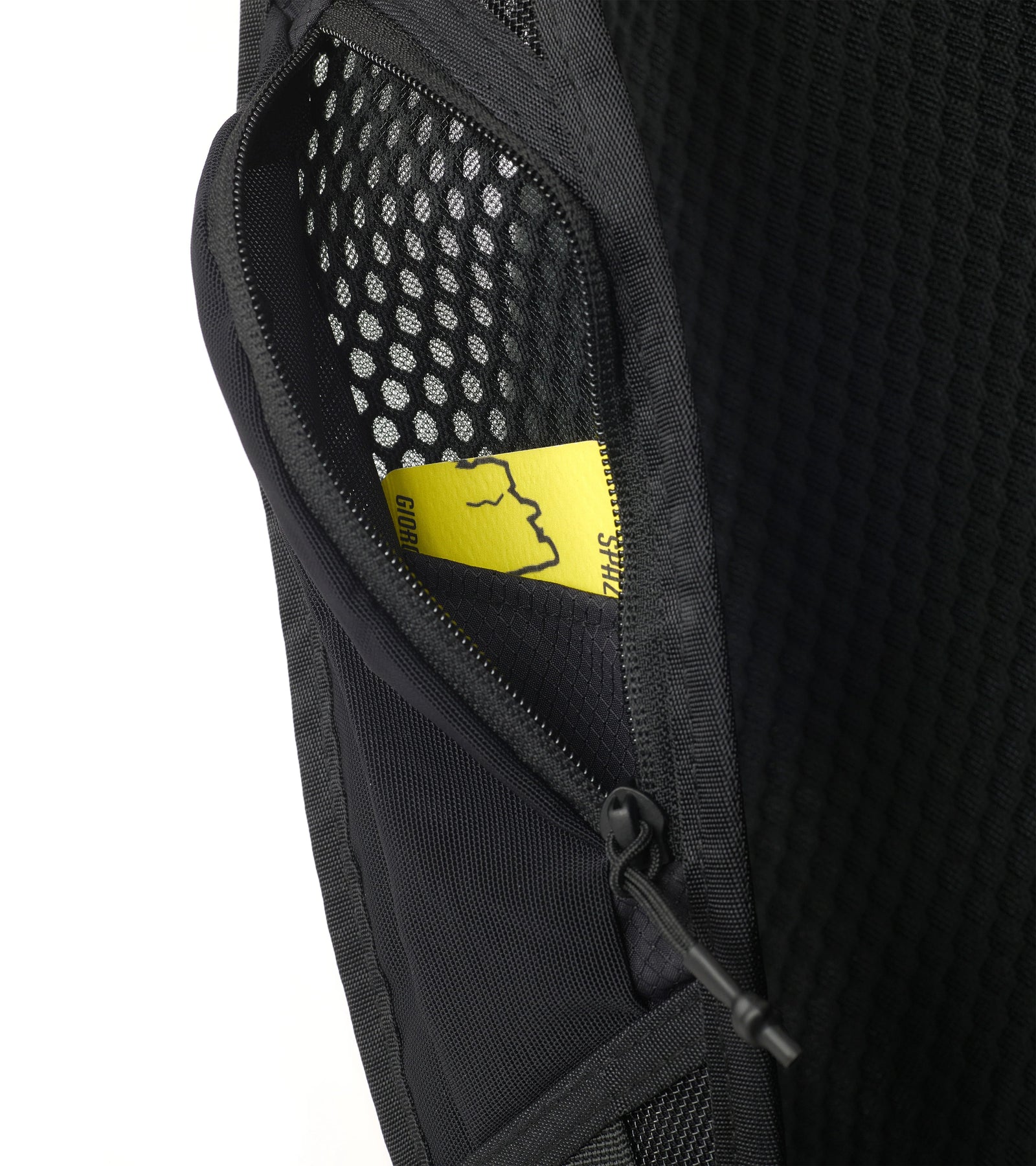 Elastic mesh pockets on the shoulder straps offer quick access to phones and transit cards, while the front elastic storage area provides space for a water bottle or other grab-and-go essentials.