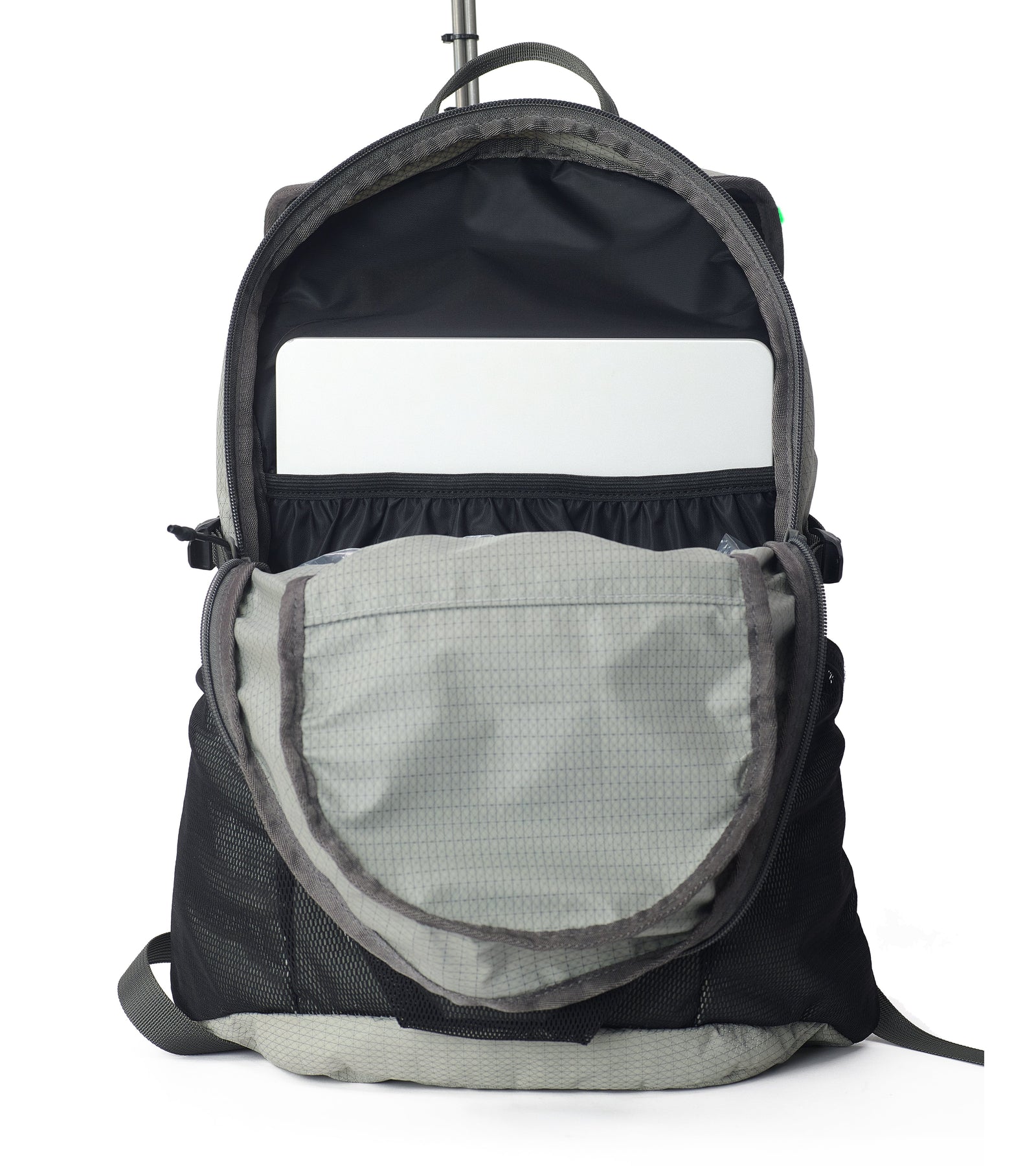 The front features a zippered pocket and mesh pouch for quick access to everyday essentials.A hidden back pocket provides secure storage for personal items such as a wallet or passport. The main compartment includes a dedicated laptop sleeve that fits up to 14 inches MacBook Pro, meeting the needs of daily commutes, mobile work, and short trips.