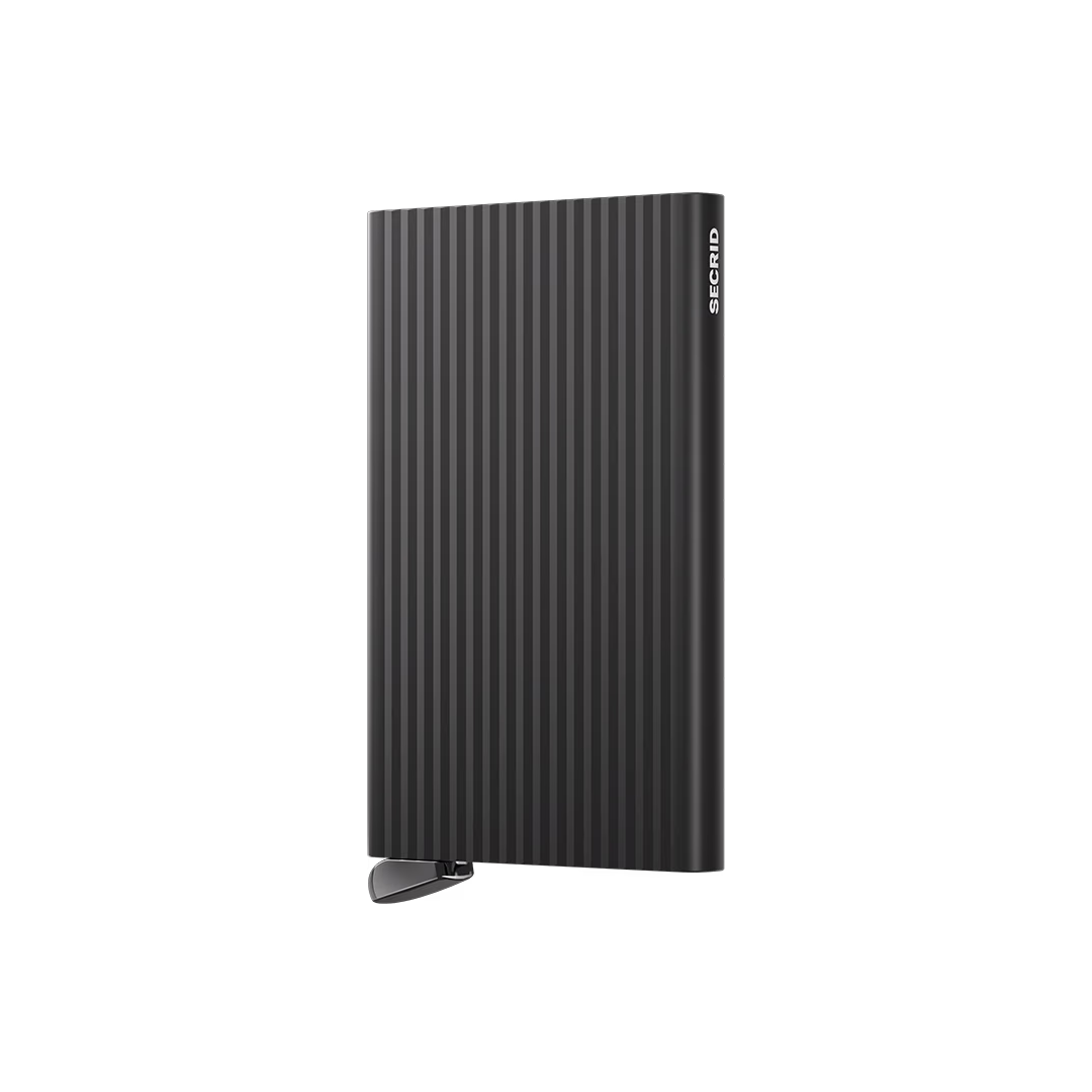 The Cardprotector is our most compact wallet, yet it provides storage for up to six cards. You can slide them out with a single motion, ready for immediate use. Its aluminium casing protects against bending and breaking, and also makes it RFID-safe.