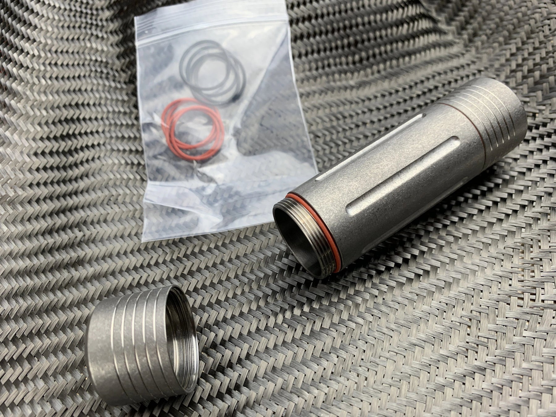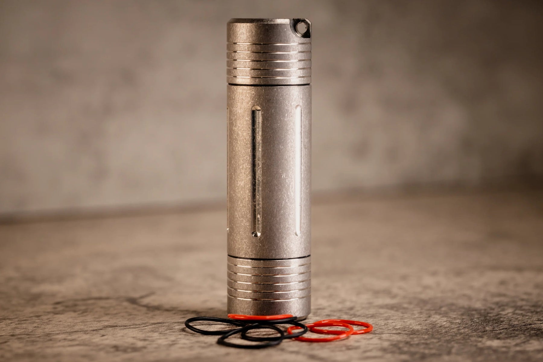 Crafted from rugged Titanium 6AL-4V with a stylish Stonewash Finish, this cache boasts exceptional durability and resilience. Its compact dimensions of 94 mm (3.68") in length, 26 mm (1.07") in external diameter, and an internal opening of 22 mm (.873") make it highly portable and discreet.