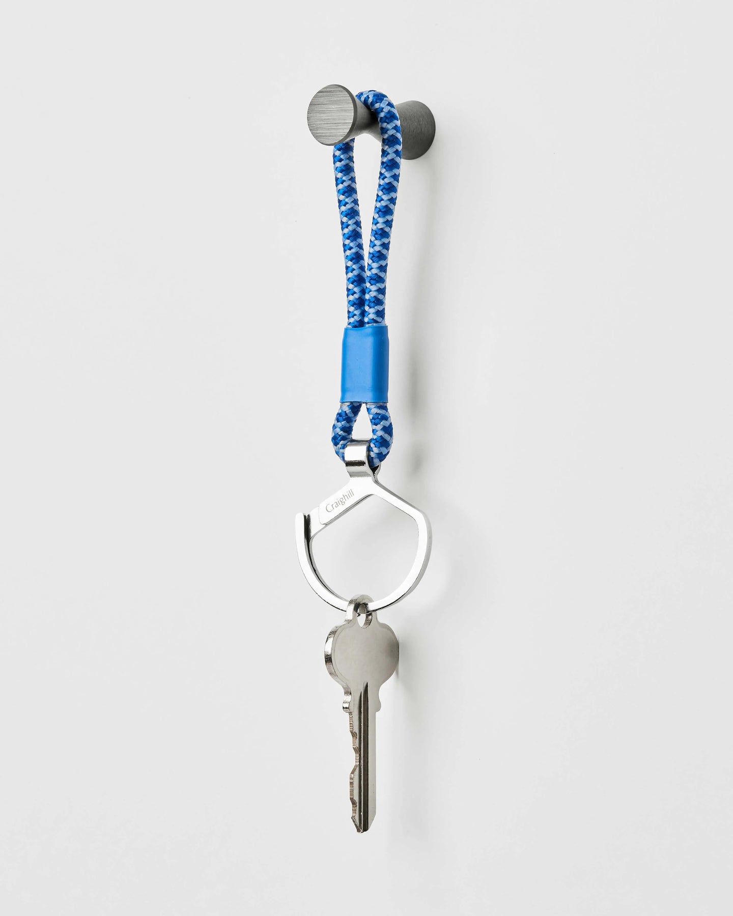 Modern life is perilous. The Rope Split Ring can reduce the risk by keeping custody of all your keys and clip-ons — without costing you your cuticles. With an extended flange for opposing digital force, the Rope Split Ring opens with ease, transforming the task of populating your keyring from a dreaded chore to an act of careful curation. It hangs suspended at the end of a grabbable, twirlable woven rope, available in Cornflower, Monarch, and Slate to suit the many purposes and personalities of your various sets of keys. Perfect for sharing access with friends, keeping the house keys separate, or just making your personal set ready to grab and go, the Rope Split Ring is a colorful, cuticle-safe home for all your can’t-lose keys.