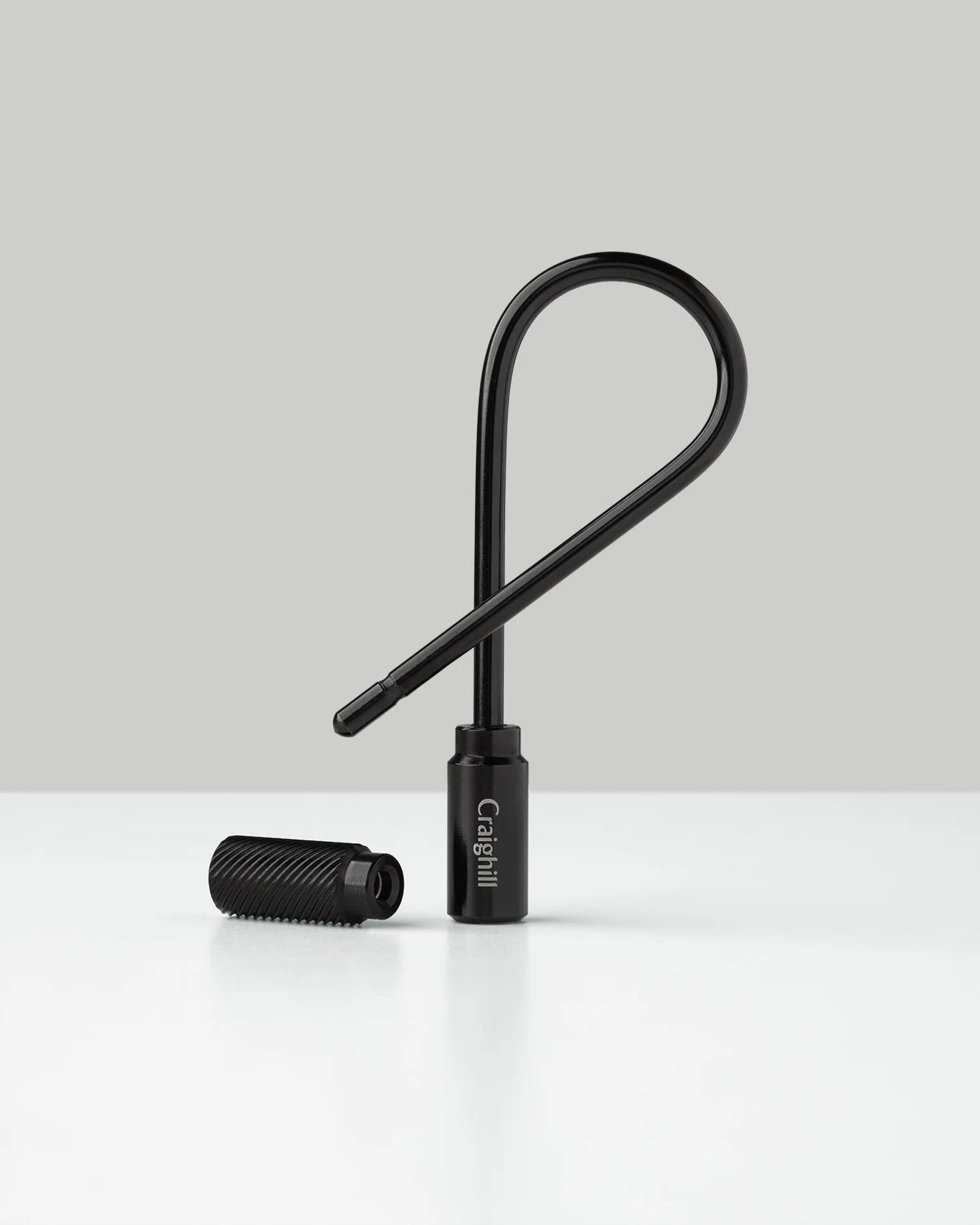 A helix-shaped wire with turned end-caps. Simply unscrew the knurled side to add or remove keys. A daily, tiny joy.