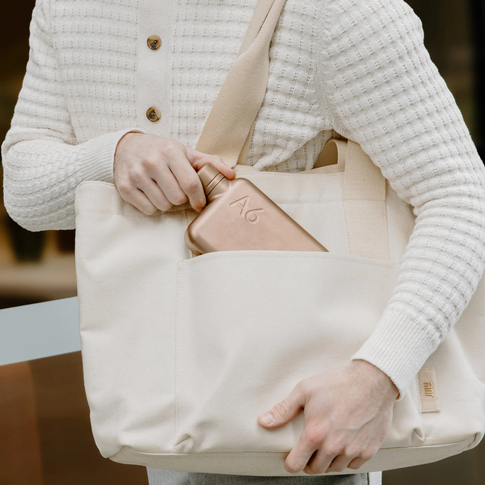 It features a padded laptop pocket (up to 16 inches), and designated A5, A6, and A7 pockets so you can easily bring your memobottle and other reusables along on your daily adventures.