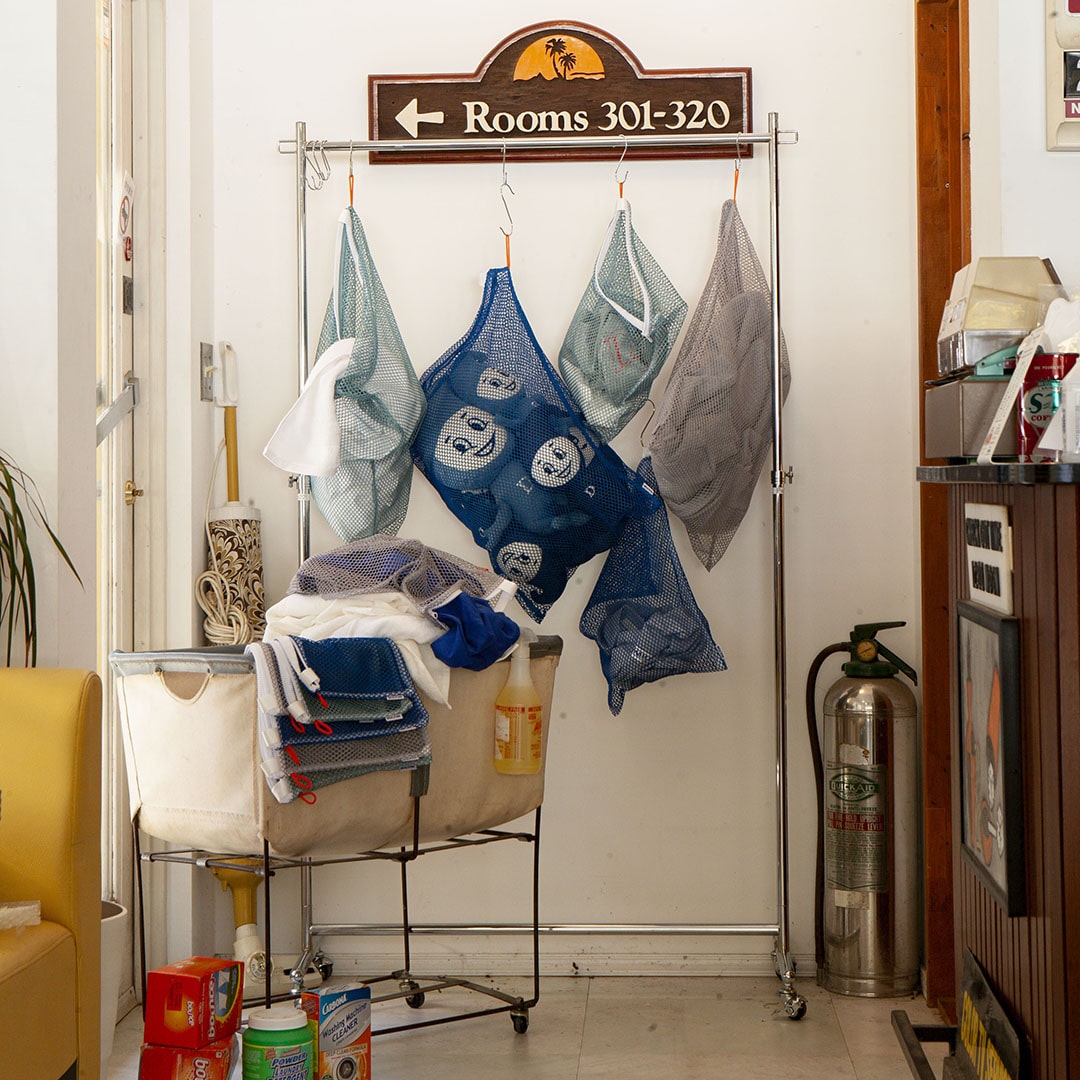 This mesh pouch features a muted gray-tone color accented with orange hoops. Available in a variety of sizes, this series can be used for packing, everyday laundry nets, and even small item storage. The zipper opens to the side for easy access. It allows for smooth storage of clothing when traveling, and stress-free washing when returning home. This comfortable item satisfies the desire to be particular about even the most ordinary everyday items.