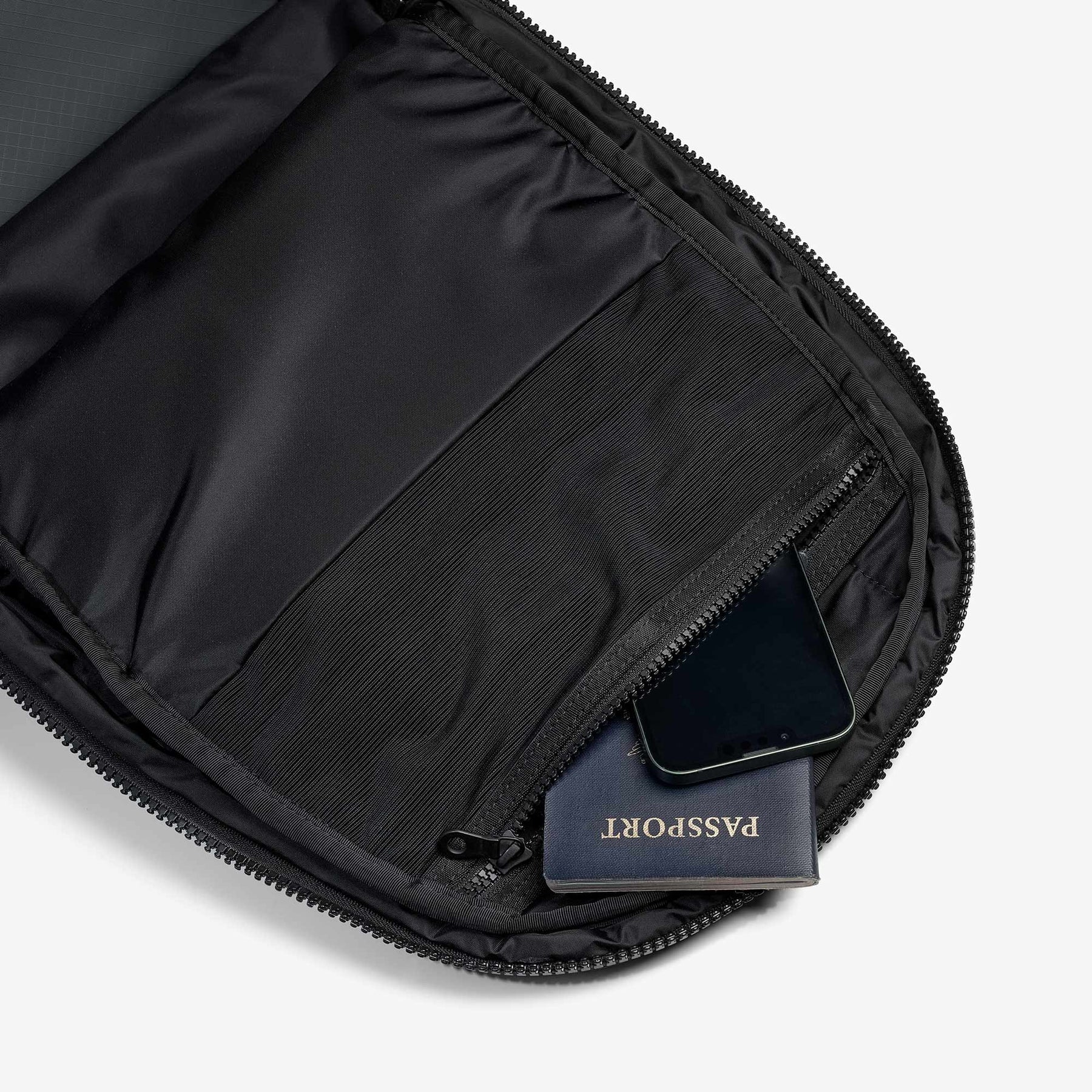 Opens full length for easy packing and organizing. Features a highly considered and tested internal lay-out that doesn't cheap-out. This bag is premium inside and out. Featuring our rugged rip-stop nylons- never polyester.