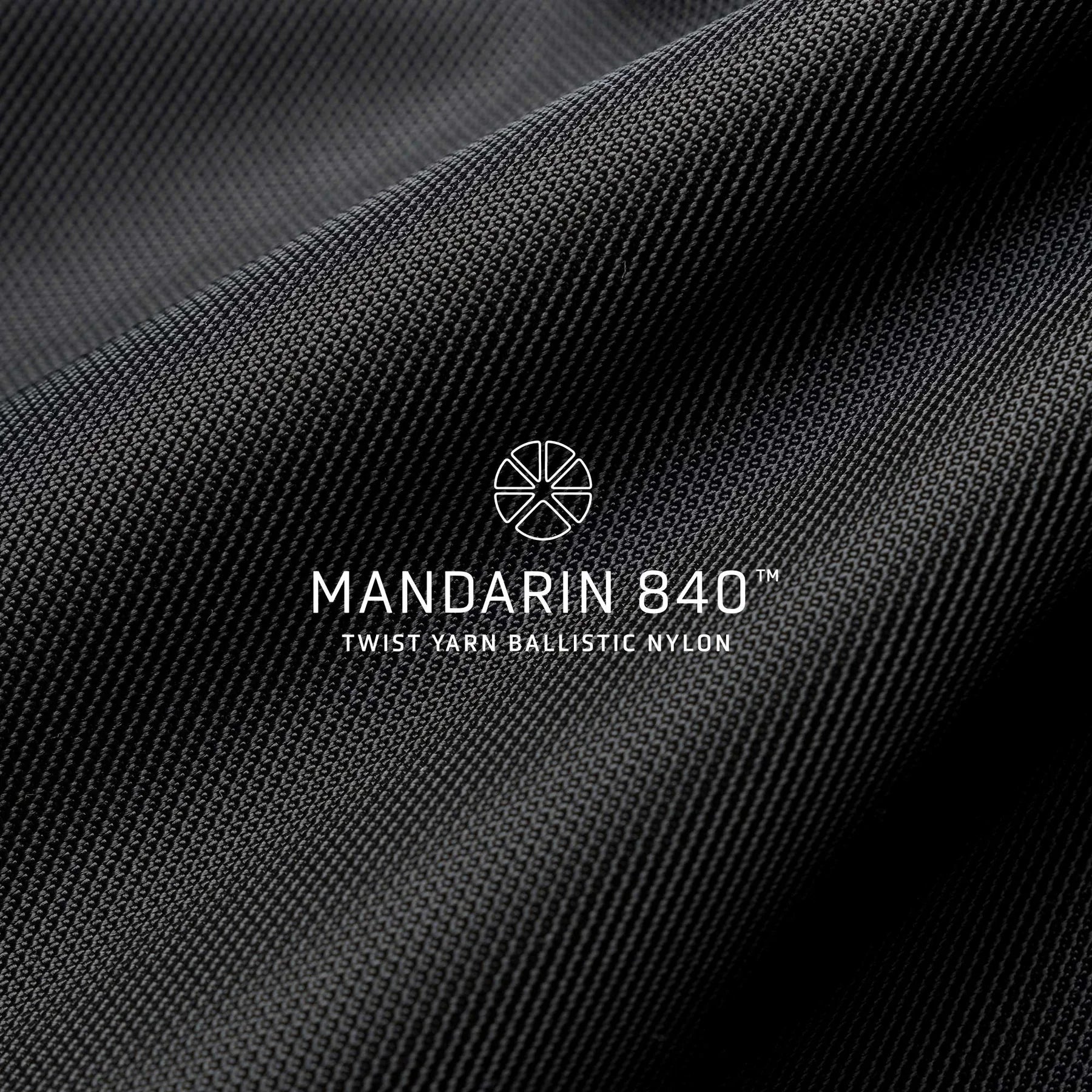 MANDARIN 840™ Our premium super fabric is specially woven to endure the longest hauls while maintaining a professional compusure for the perfect combination of grit and grace.Woven with twisted yarn ballistic nylon for a denser, stronger weave. Featuring a DWR finish and backed with a waterproof membrane.Exceptional hand-feel and drape with a dull satin finish.