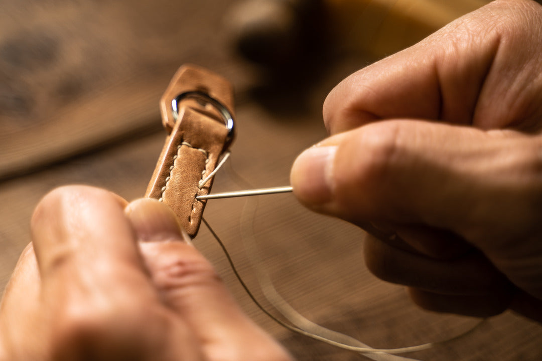 The “Double Needle/Saddle Stitch” method is applied to the neck/wrist straps. Thick linen threads are used to prevent sweat corrosion and are waxed to avoid frizz. The Hand Sewn Saddle Stitch method is stronger and more reliable compared to machine stitched leather goods. A traditional stitching technique that Wotancraft is proud to present.