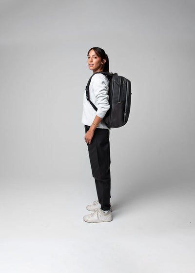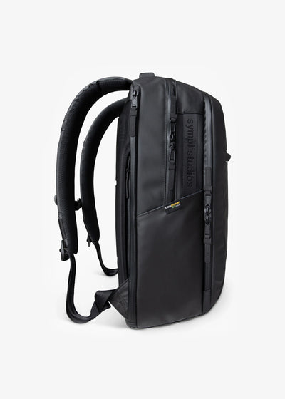 The Weekender Pack is made with a stealth aesthetic and dedicated tech organization, ample interior storage and waterproof materials & zippers, it's designed to take you from the office to the outdoors and beyond. – TSA carry-on approved, Fits 16" Laptop.