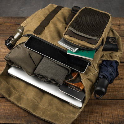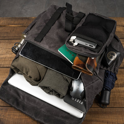 Can store phones, power banks, cables, FIELD NOTES memos etc.