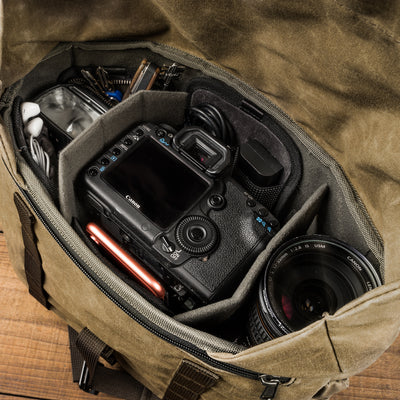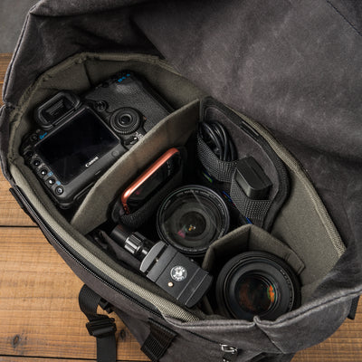 The Pilot series uses functional lightweight canvas while reducing the use of leather accents and metal hardware. Instead we choose to use Duraflex hardware and buckles (used by prominent outdoor brands such as Columbia / Patagonia / Mystery Ranch / LuluLemon), which allows us to keep the bag weight under 1kg, to make room for your heavy camera equipment.