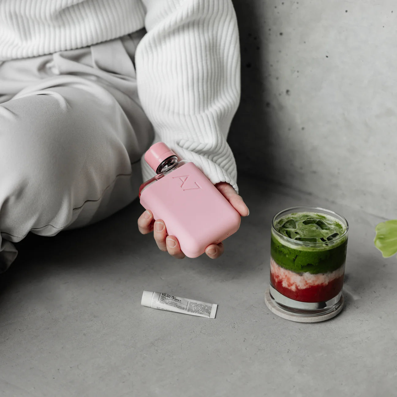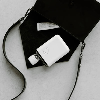 The memobottle easily fits in your pocket, handbag, or backpack, thanks to its space-saving form. Its paper-inspired design allows for a Tetris style fit in your bag, flat against your books, laptop, and more.