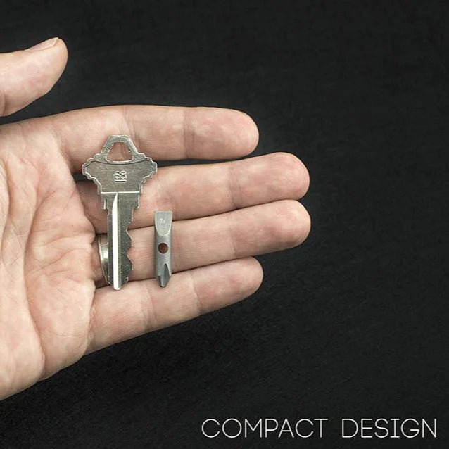 Both versions feature a #2 Phillips head (most common size) & 6mm flat head. Each one weighs around ¼ the weight of a standard house key, so you don't notice it's there until you need it.