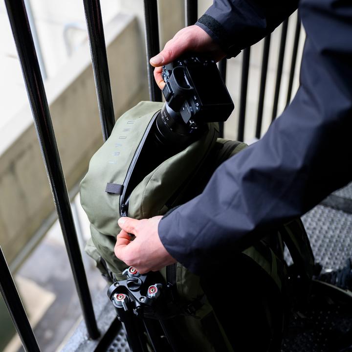 The Rift Pack can be upgraded to an ultralight crossbody camera bag with the Rift Rift Camera Kit.