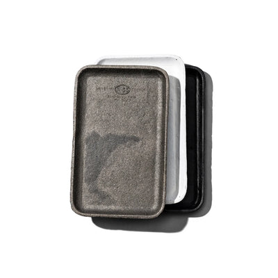 Adding industrial flair to your home or office, this sturdy tray formed from solid iron can be used for multiple purposes; from holding your keys to organizing desk essentials. Coming in three colors, each Cast Iron Tray has rubberized grips to protect your surfaces and keep it from sliding.