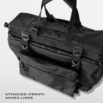 Our newest X-CASE (pronounced cross-caseoffers ample storage for everything you need to take with you and innovative features to allow ease of use from the office to the airport and everything in between.  The ultimate all-in-one bag with an added bonus to attach our ANNEX series (LINER, CARRIER and/or CASE) when needing a compact, quick access daily carry option to bring with you. Or as an added storage capacity. ANNEX CARRIER/CASE can attach on any side panels of the X-CASE (either during backpack or briefcase mode), while the ANNEX LINER can attach to the compression straps on the front panel.