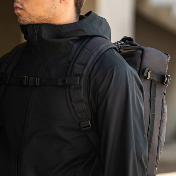 • Stowable backpack harness (w/ chest and waist stabilizer straps)
