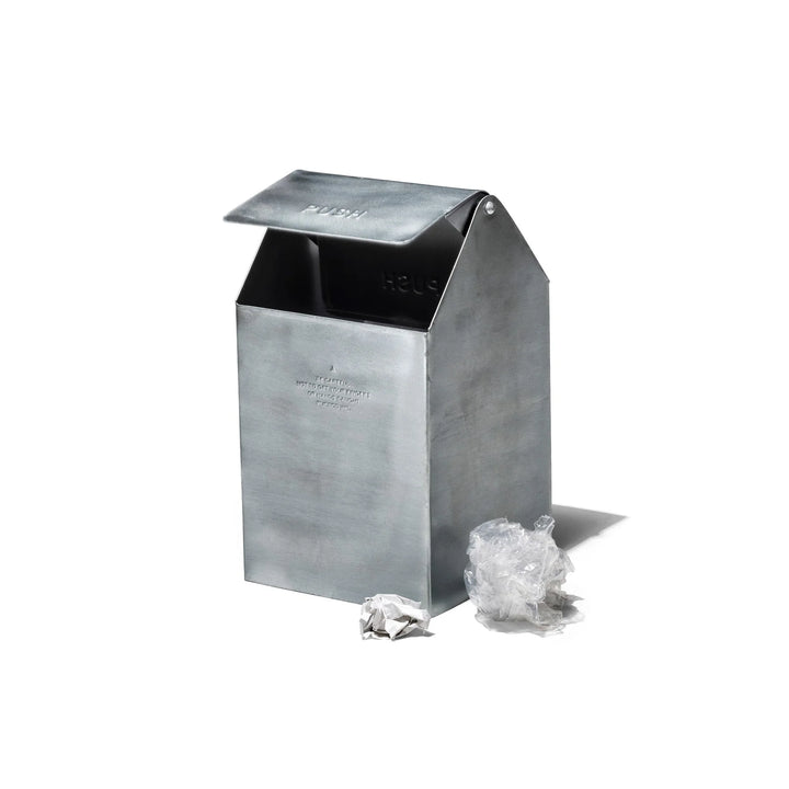 Featuring a stainless steel finish this perfectly sized countertop dustbin is great for keeping your beverage area neat and tidy. Stray from the conventional countertop dustbin design with Puebco's signature industrial inspired look with utilitarian lettered branding and reclaimed steel.