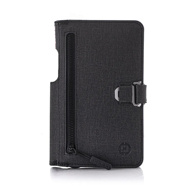 The P02 also holds a pen and notebook - It perfectly fits the Dango Pen. (Sold separately & available in either satin silver or black). The P02's unique "through-hole" design allows you to access your pen either from outside of the wallet, or inside of the wallet while reviewing your documents. In addition, a sleek water resistant pocket is present in the front for small items such as loose change.