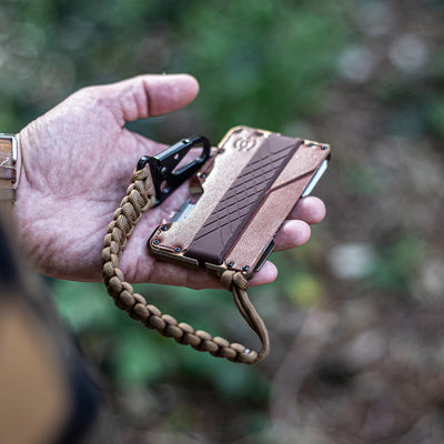 Available with a removable, heat treated, CNC'd high carbon stainless steel Dango Multi-tool with over 14 functions. Some functions include a serrated and sharpened edge, paracord tensioner, 10/15mm hex, smartphone stand, nail pryer, ruler, etc. The multi-tool is easily removable from the wallet and can be either checked or left at home when traveling.