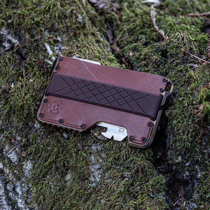 Genuine top grain leather that is secured to the Dango Wallet chassis with mil-spec bolts. Slim profile for minimal carry.