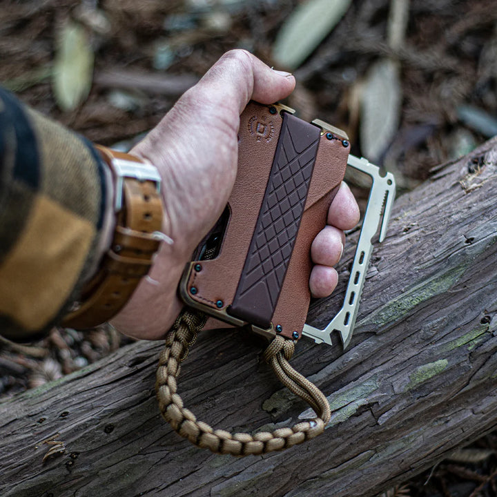 The T02 Tactical™ Titanium Wallet was designed for the outdoor enthusiast who loves to keep things clean and needs to have tools easily accessible. The chassis of the T02 Wallet is composed of 100% raw titanium, which is stronger than high-strength steel yet only 60% heavier than aluminum, giving it the optimum weight-to-strength ratio. Comes with the 14-function Dango MT02 multi-tool which slides into the cavity where the cards sit. When engaged, the multi-tool can nest securely into the safety locks built into the wallet chassis- allowing for easy sawing, cutting and protection. Common tools are built in: hexes, paracord cutter, nail pryer, a serrated/sharpened edge and even a phone stand. We thought of everything and think you will be pleased with all of the functions built into a compact package.