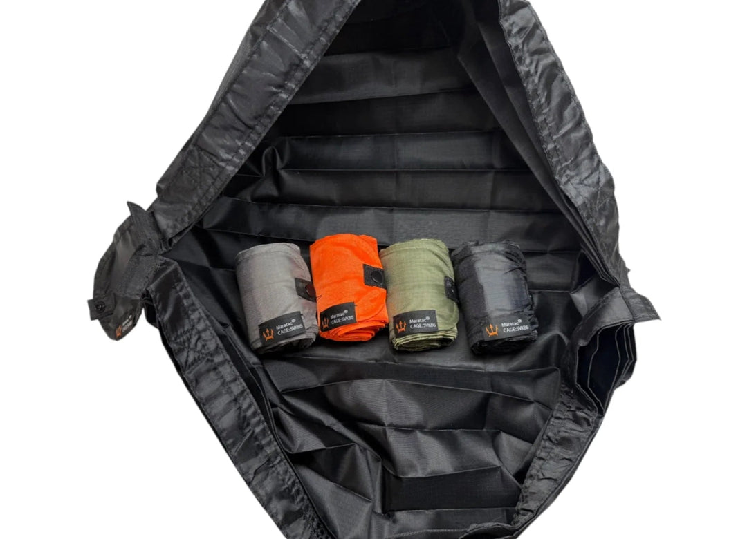 FDS-1 – Field Deployment Sac by Maratac® is the perfect on the go bag when you need it most, from the grocery store or in the field training always be ready. The integrated quick collapsible design fits in the palm of your hand when not in use and turns into full size bag when in need. 3.4" x 2" ( 10 Cubic Inches ) when folded. When deployed it's 26" Wide ( 18" Diameter ) The integrated folds are embedded into the Ripstop Nylon with steam so it's easy to fold in seconds. The integrated handles will self seal the bag when in use to keep your content safe while traveling.