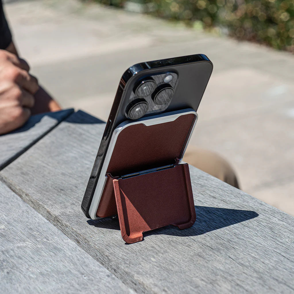 Additionally, the MagSafe Wallet deploys your cards and content with an inner snap back steal hinge that keeps it opened at several lock-points. The hinge mechanism when opened, allows you to use the wallet as a sturdy phone stand, in either portrait or landscape orientations. If you're a one-carry kind of person, you will surely enjoy the MagSafe Wallet.