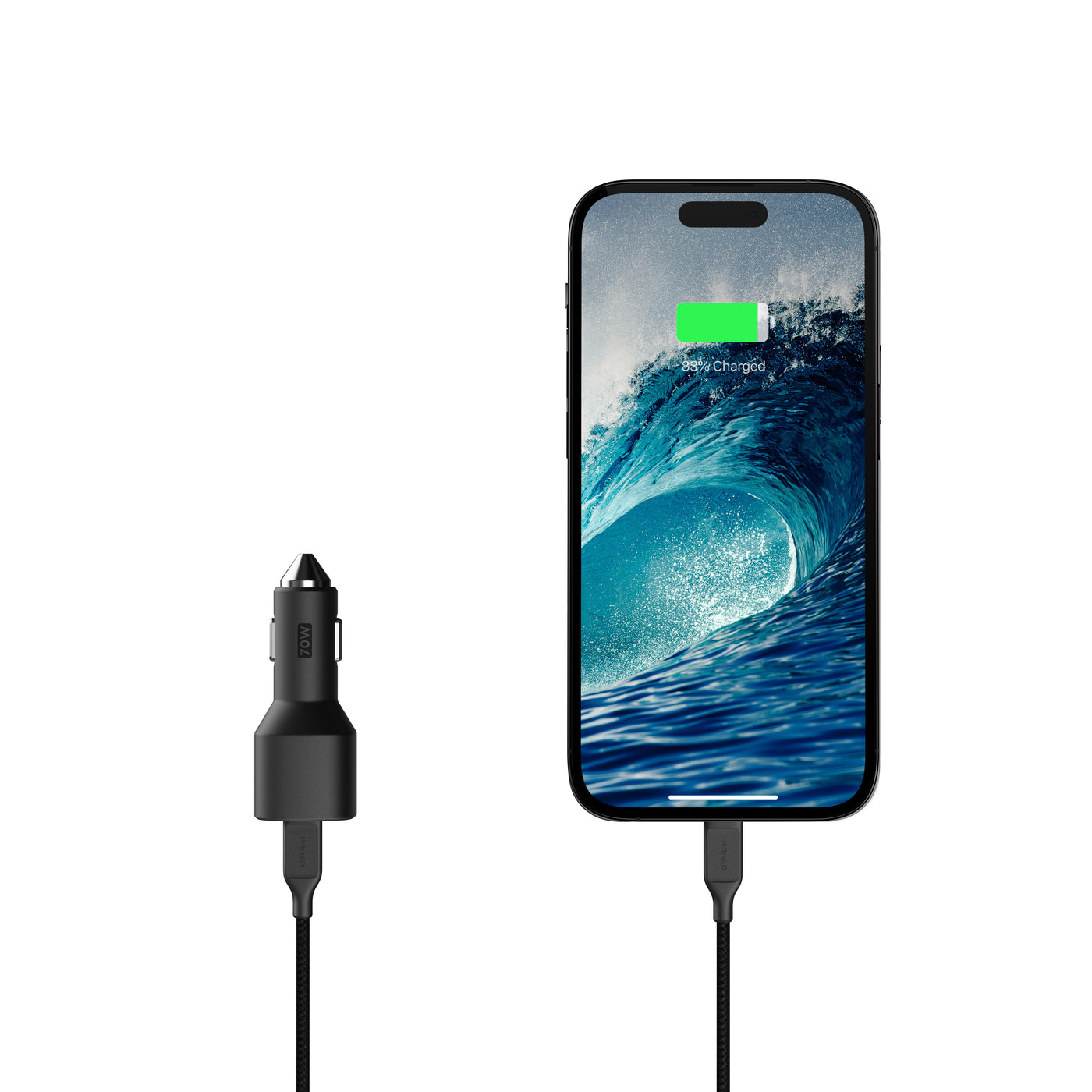 Effortlessly fast charge your iPhone and other USB-C devices on the road with 70W Car Charger.