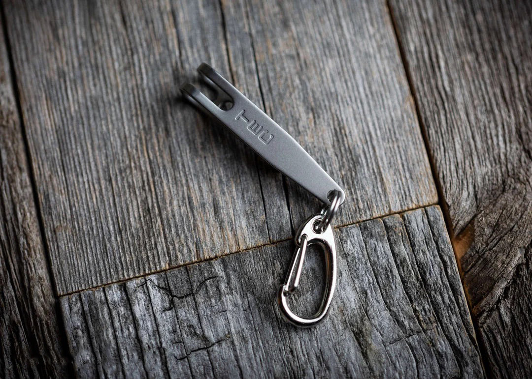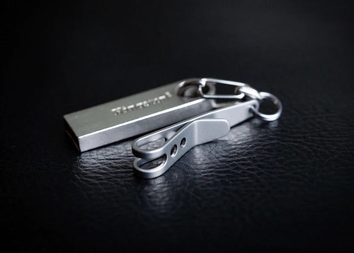 The cure for the "too-big keychain" pocket bulge, the P-7 Suspension Clip slides on to the top edge of your pocket, allowing anything clipped to it to be suspended part way into your pocket. This provides a flatter, more streamlined way of carrying your keychain gear. Put large items, like your key fob, on the P-7 clip to keep it separate from the rest of the items in your pocket. Or you can attach one of our UFO organizers to the P-7 and add even more gear without bulging out your pockets.