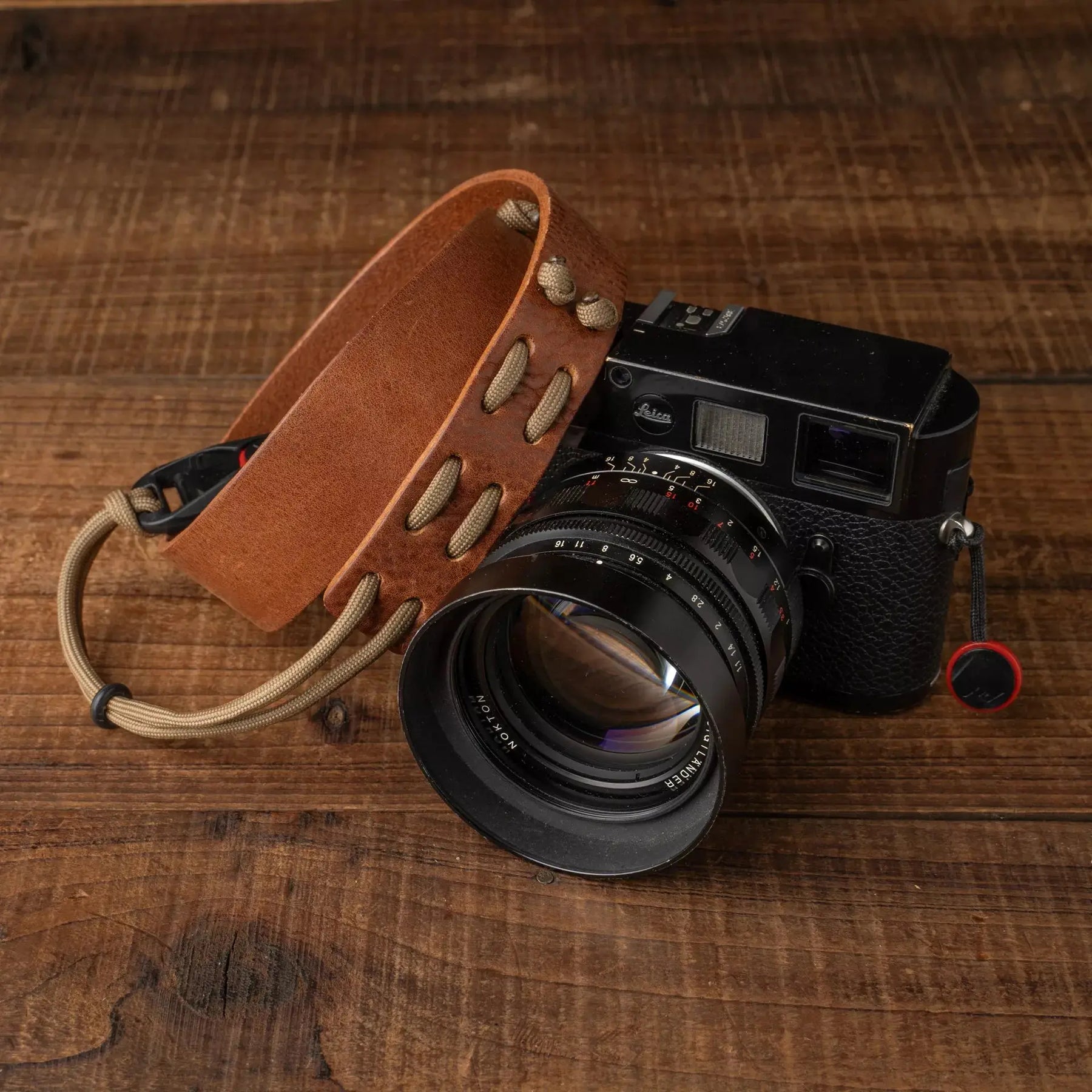 The leather used on the camera strap and wrist strap is deliberately chosen for its thickness and durability. It is vegetable-tanned leather that meets the rugged style reminiscent of World War II aesthetics.