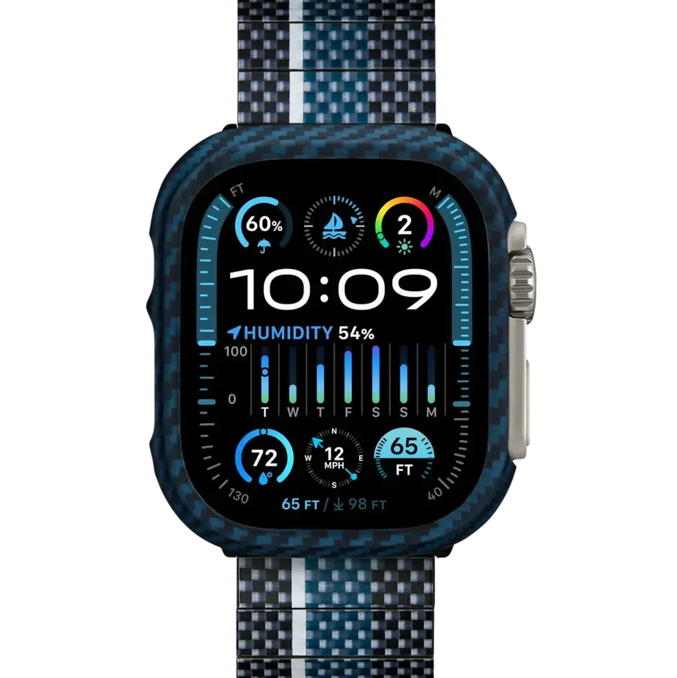 Crafted from aerospace-grade aramid fiber, the PITAKA Apple Watch case guarantees enduring strength that armors your Apple Watch from scratches and impacts.
