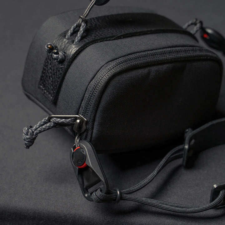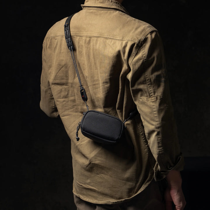 The loops on the pouch can be paired with Wotancraft ParaTrooper Camera Straps, allowing you to wear the pouch across your chest.