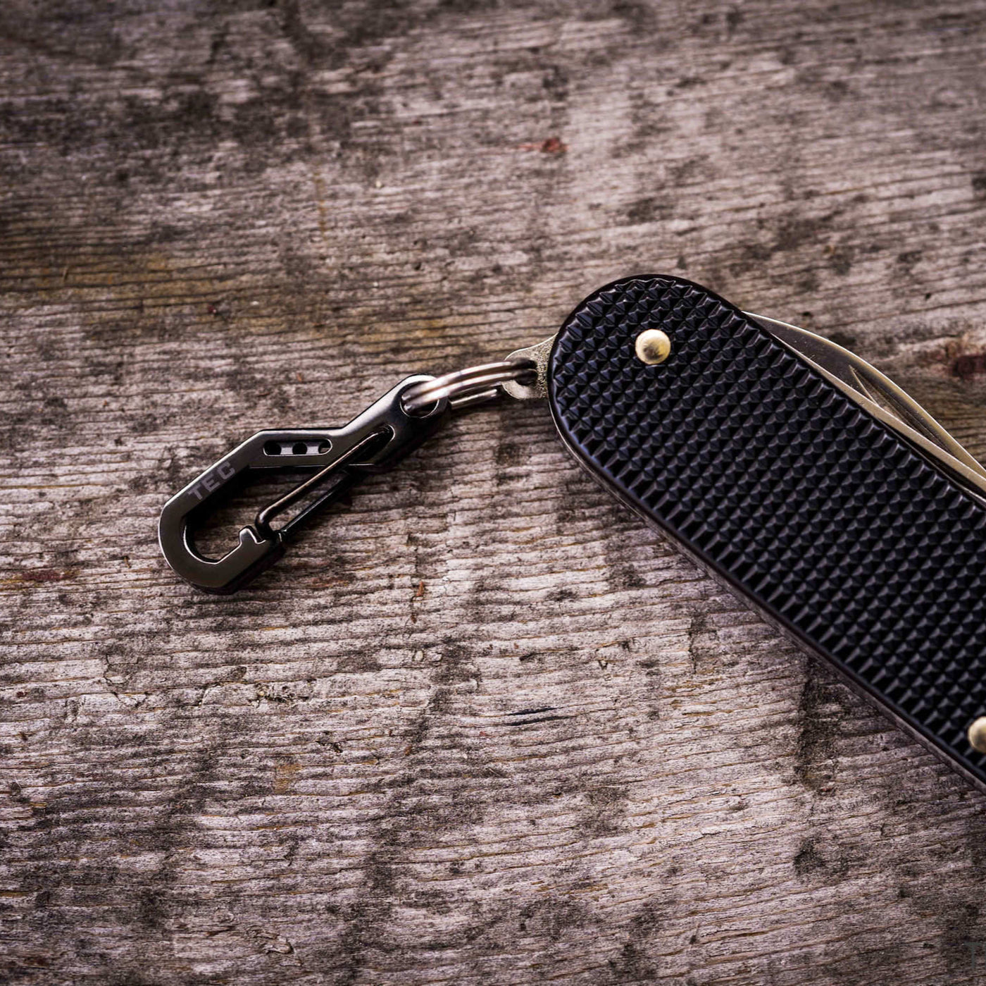 The perfect accessory to keep your favorite everyday carry items detachable, the Python Clip has a sleek and ergonomic form. This functional, essential clip will give your keys a lower profile, while adding a modern and stylish touch. And the integrated gate guard prevents the clip from accidentally releasing the contents.