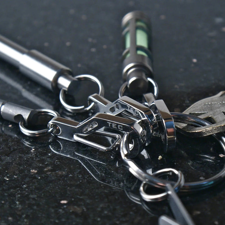 Use Python clips to separate work/home key sets, or make items easily detachable such as keychain flashlights, large key fobs, etc. Integrate Python clips into your keychain setup and only carry what you need, when you need it!