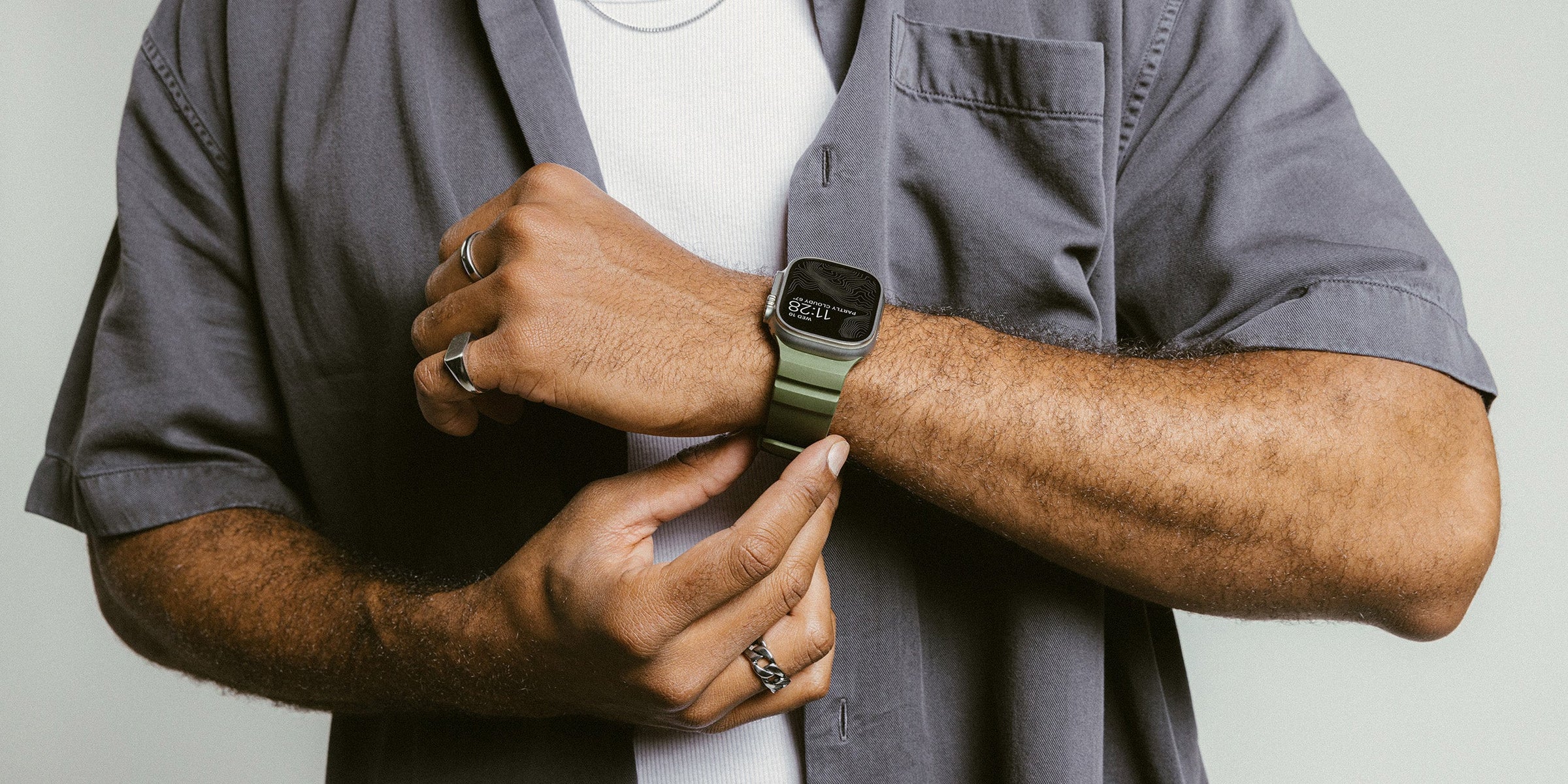 Rocky Point Band stands up to Apple Watch Ultra’s wider frame while its titanium hardware perfectly matches the watch’s finish.