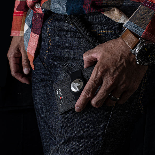 The S1 Stealth™ Wallet, stealthy & minimal, comfortable & compact. Packed with 4 pockets to fill with content, including a mini pocket for keys or SD cards. Fits up to 6 credit cards & some cash comfortably. Textured DTEX material with integrated RFID security lining & push notches for anti-theft & easy access. A built-in steel D-Loop allows you to attach a cord or chain for extra security and handling. Designed to work with Dango Multi-Tools.