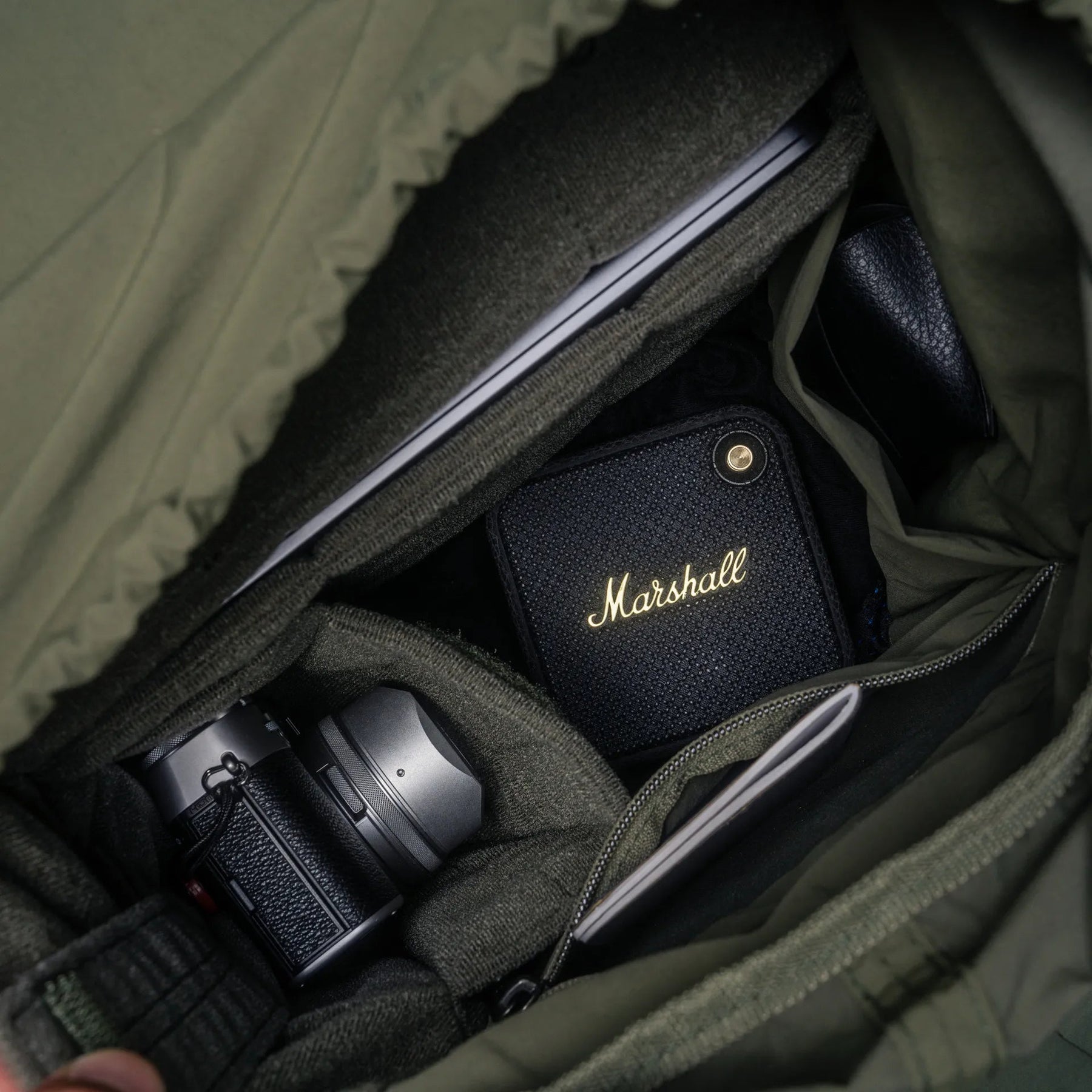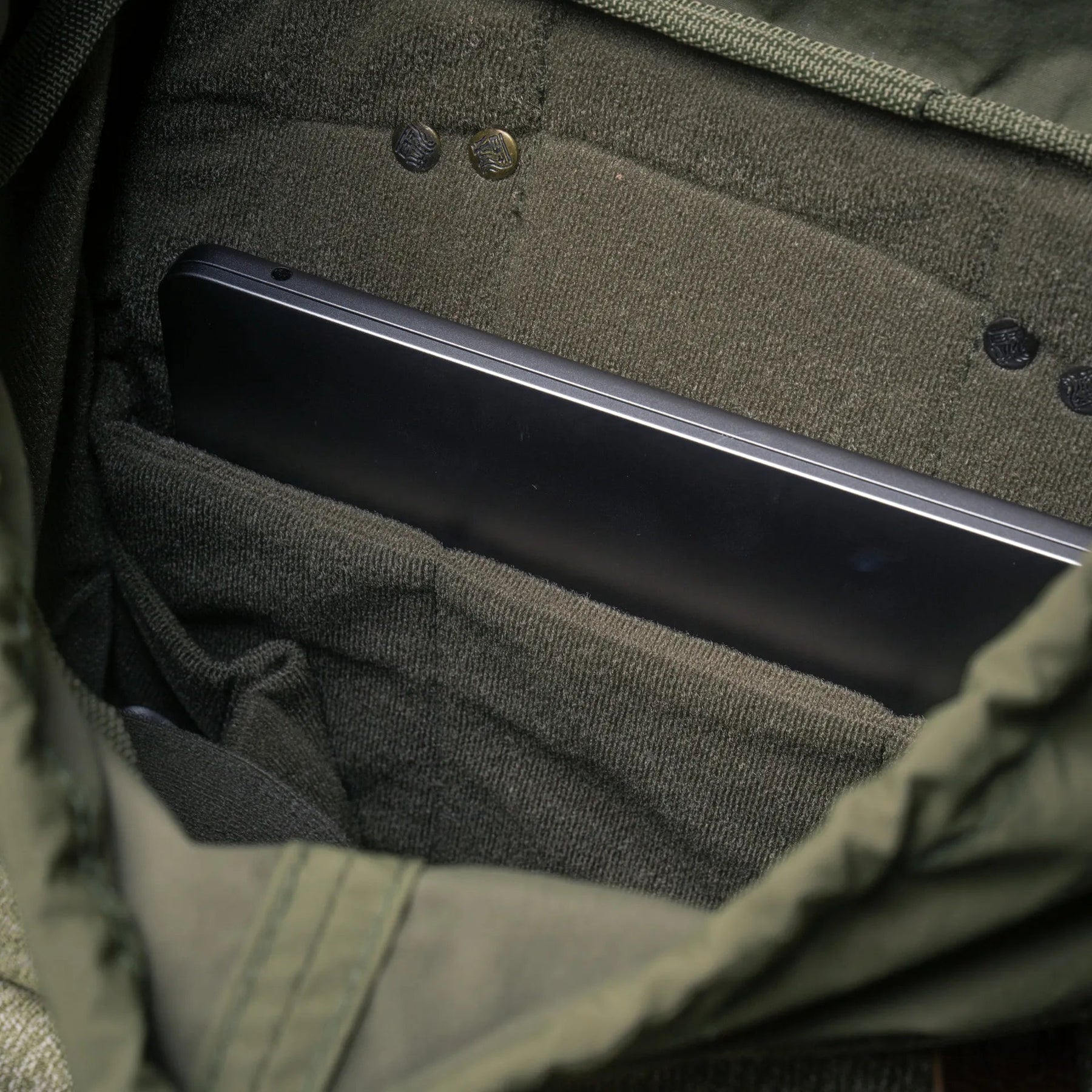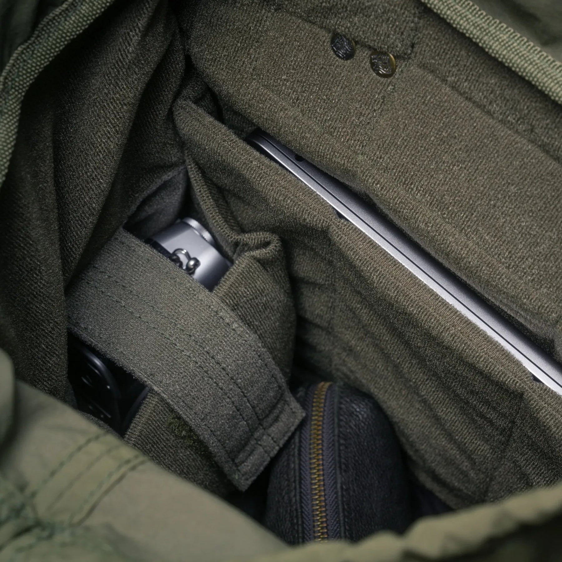 Waterproof-laminated on both sides, the exterior features a water-repellent coating that repels 90% of water droplets while the underside is PU-laminated, ensuring that all your gear is fully protected.