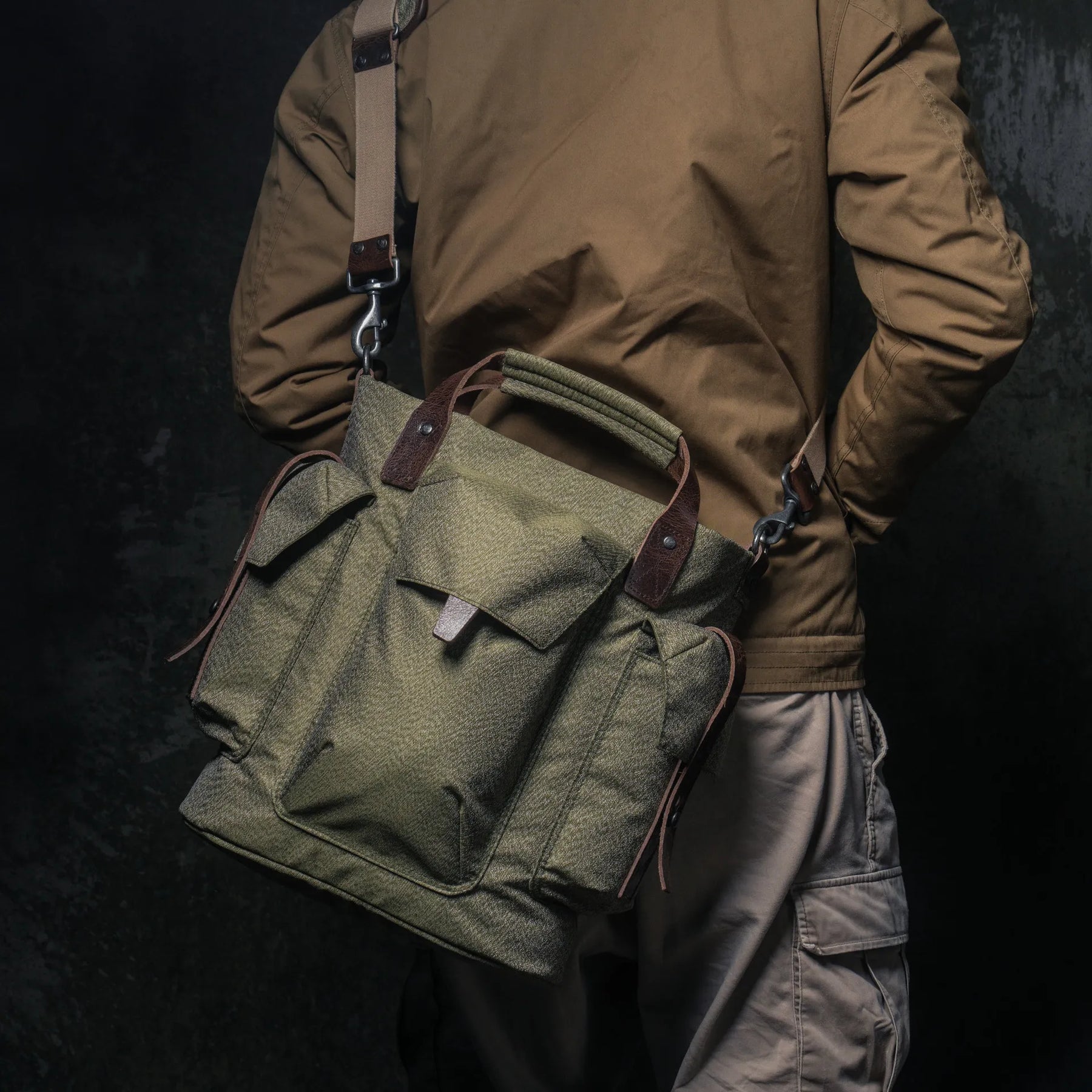 The newly launched Salt & Pepper Series includes three daily bags, each paired with vegetable-tanned leather accents and vintage-style hardware, creating a nostalgic, battle-distressed WWII militaria vibe.