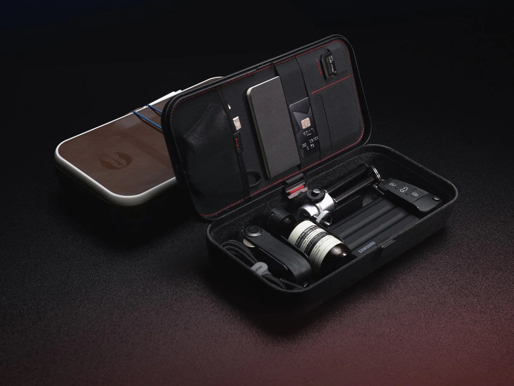 Store cards you don’t use often in the lid to free up space in your wallet. Also included is an elastic pouch for smaller items that tend to go astray.