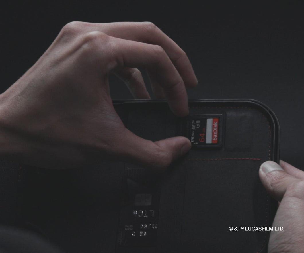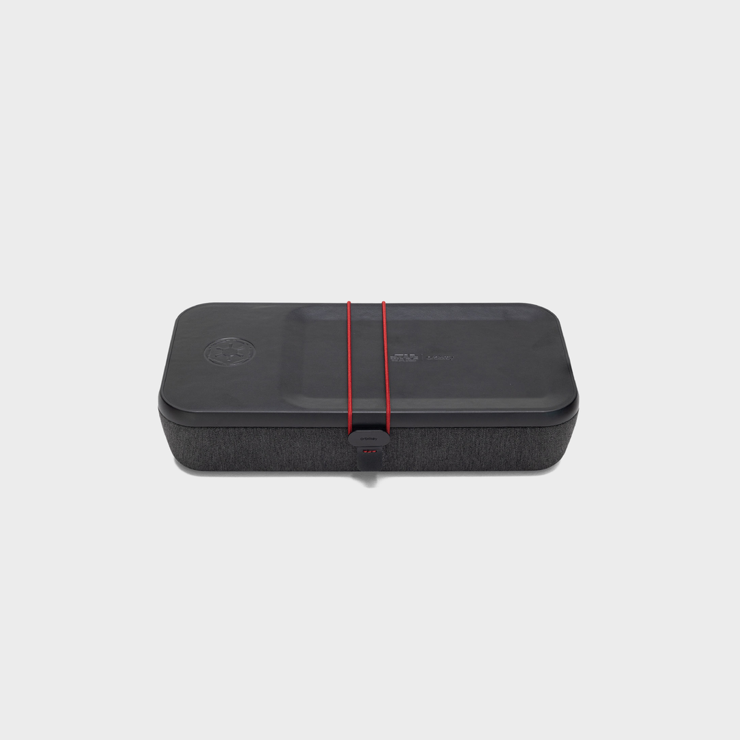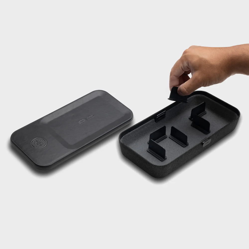 This dark side Nest v2 features an all-black exterior, complete with contrast red stitching, elastic loop, and a foil debossed Lightsaber and Empire™ logo.