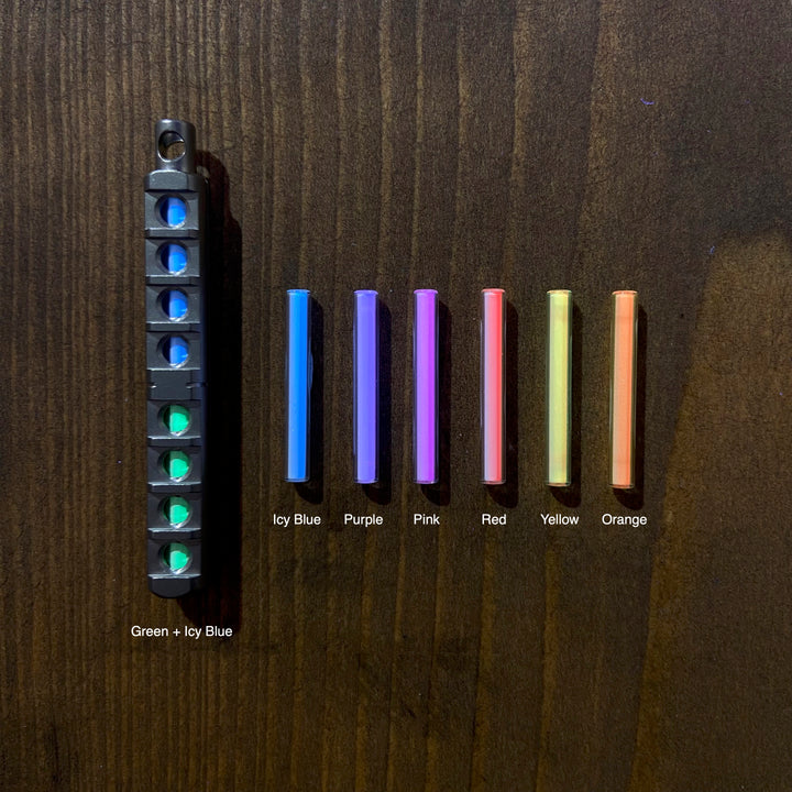 Due to the simple yet secure retention method, you can change out the vials anytime you like to achieve different glow colors. Match your favorite sports team, school colors, or to help identify the contents of what you attach it to.
