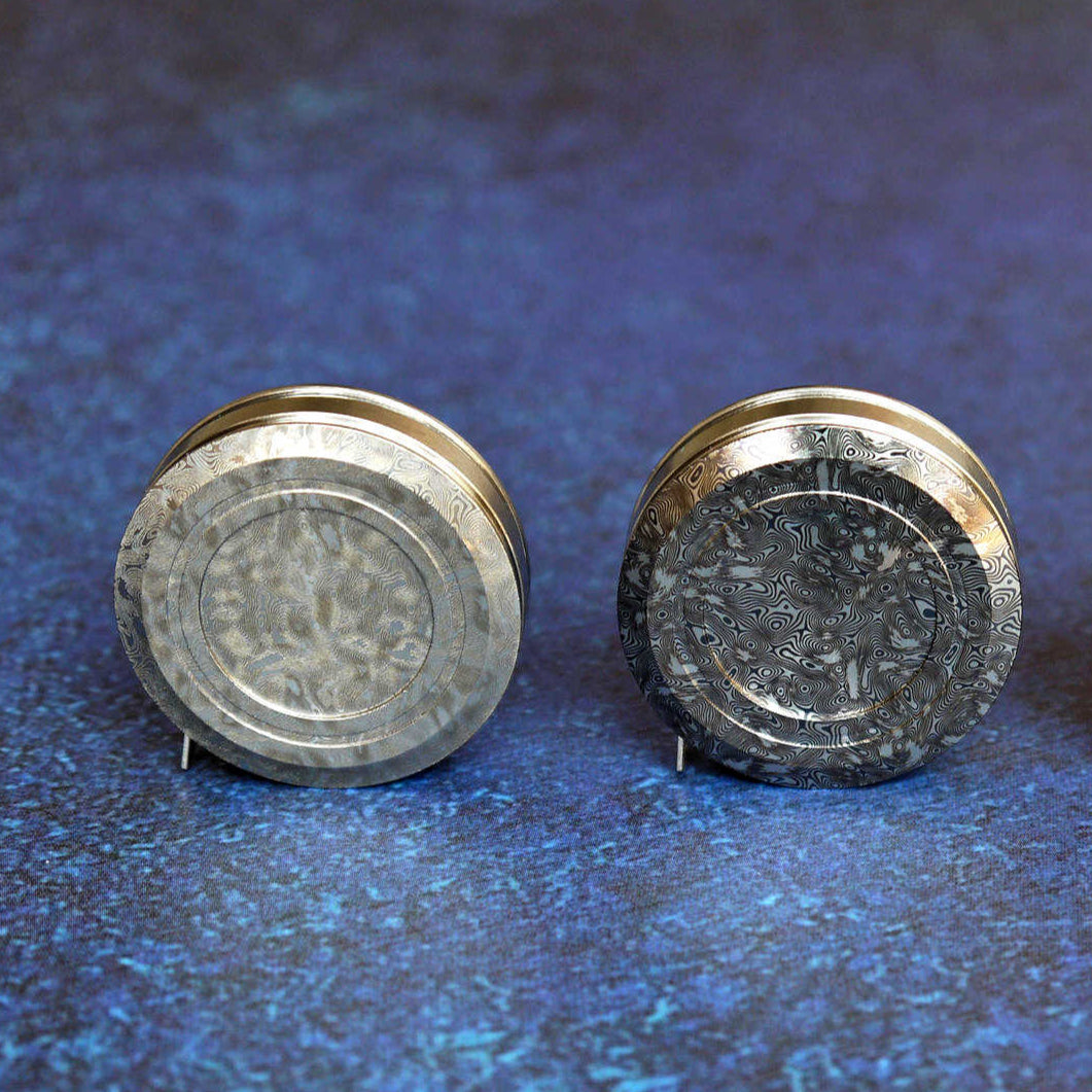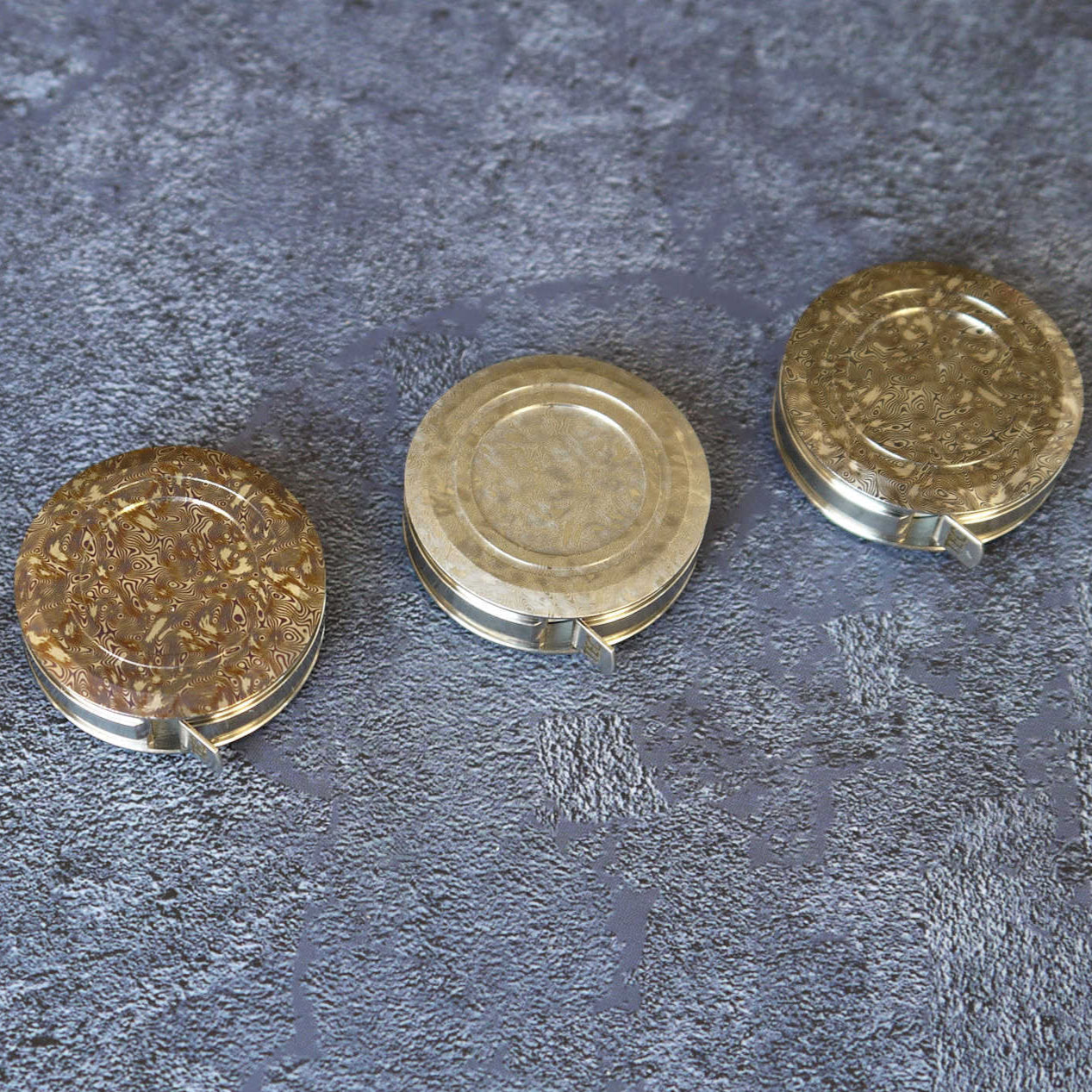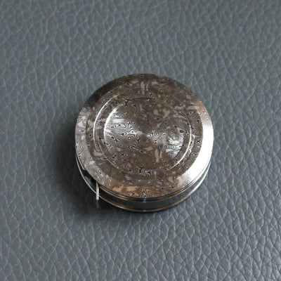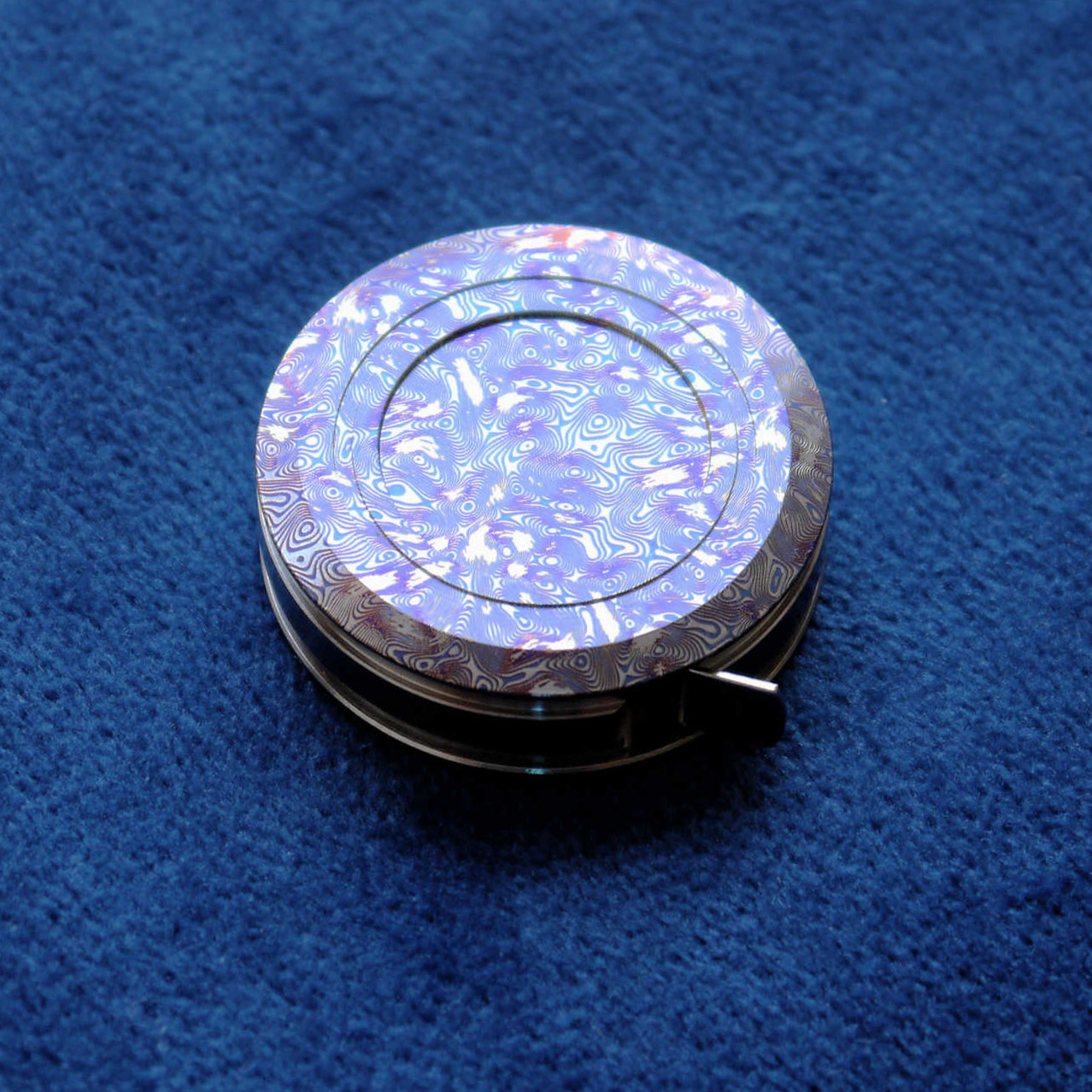 Based on the same design as our standard Ti-Tape micro-sized titanium tape measures, these Special Edition models are identical in every way except for the finish. The outer disc surfaces have been laser engraved with a Damascus steel pattern, providing one of the most amazing appearances you can imagine. It is literally something you have to see to believe!