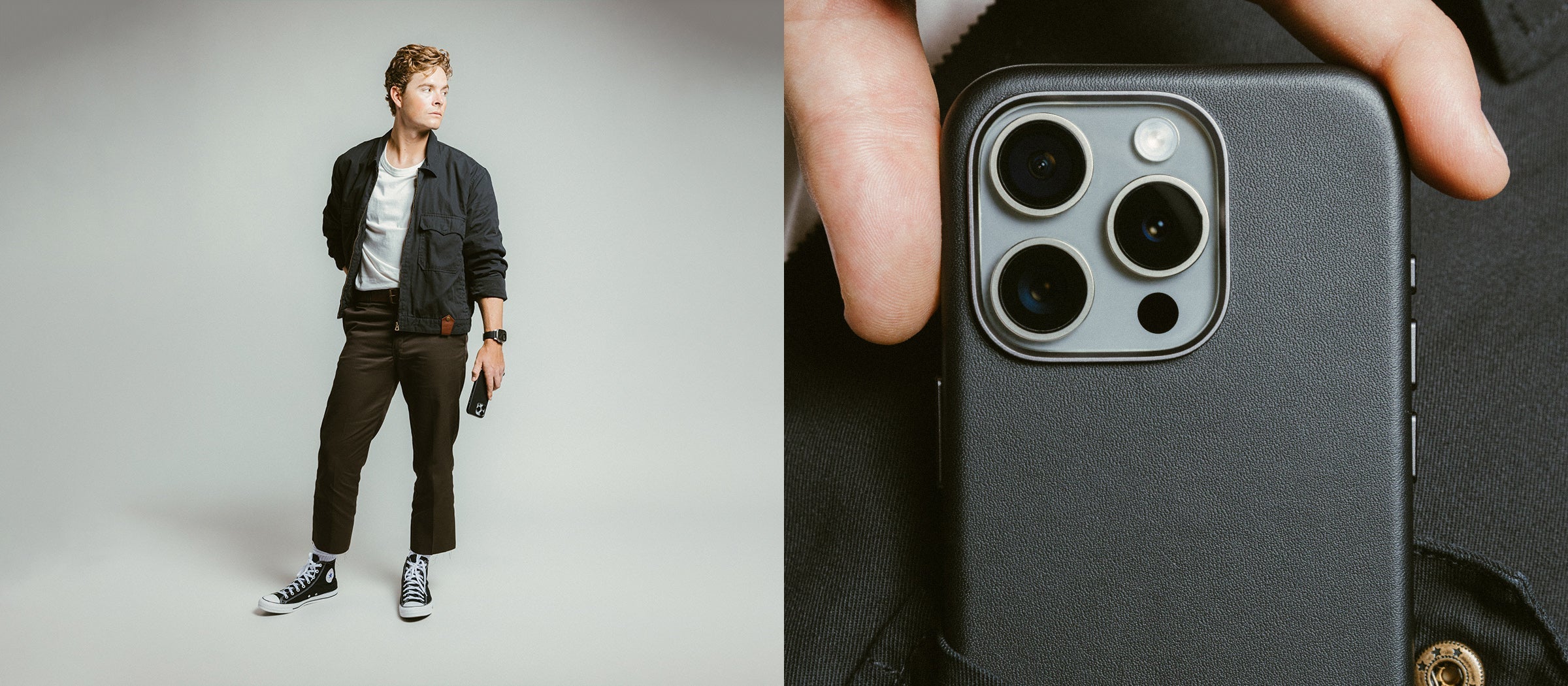 Traditional Case has tactile anodized aluminum buttons, an aluminum camera ring, and precise cutouts for your iPhone’s bottom ports.